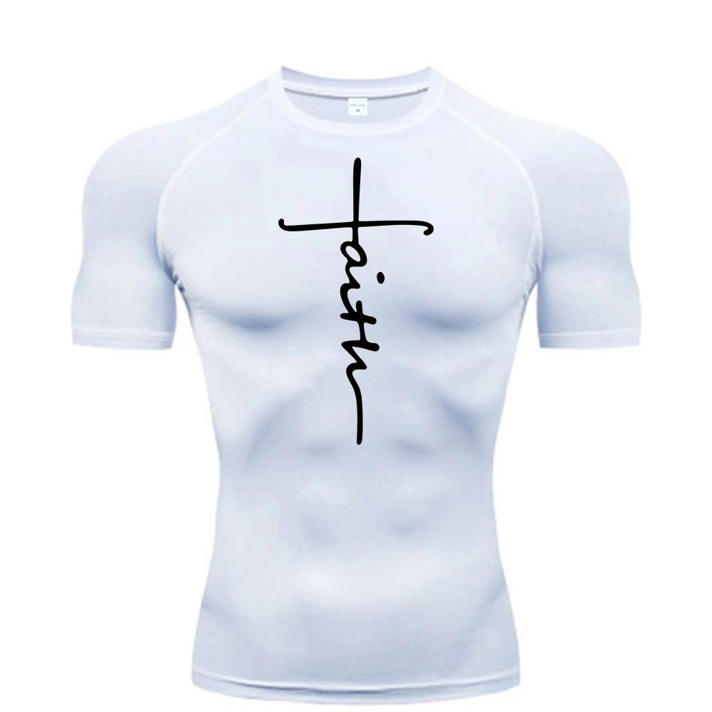 Christian Exercise Kompressionsshirt, schnell trocknendes Sport-T-Shirt, Fitness-Sweatshirt für Herren, Oberteil, kurzärmelig, Rashguard