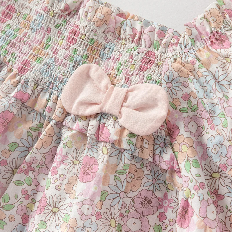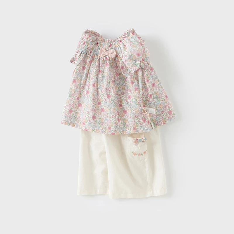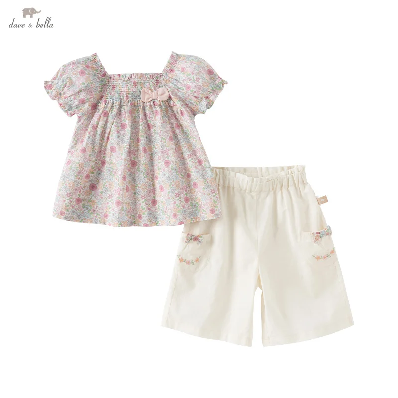 Dave Bella Kinder-Set, süß, niedlich, Blumen-Schleife-Druck, Hosen-Set, Mädchen, Baby, Sommer, modisch, lässig, zweiteilig, Outdoor-Party, DB 2252122