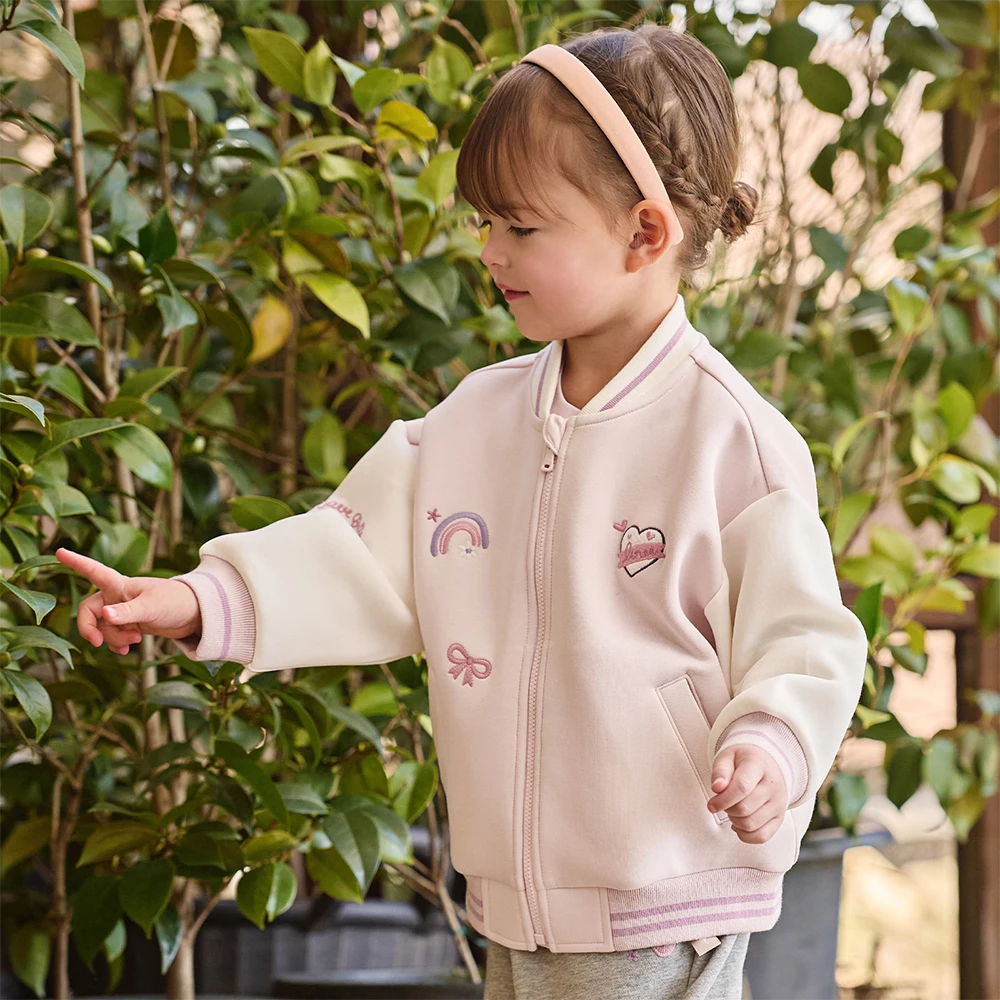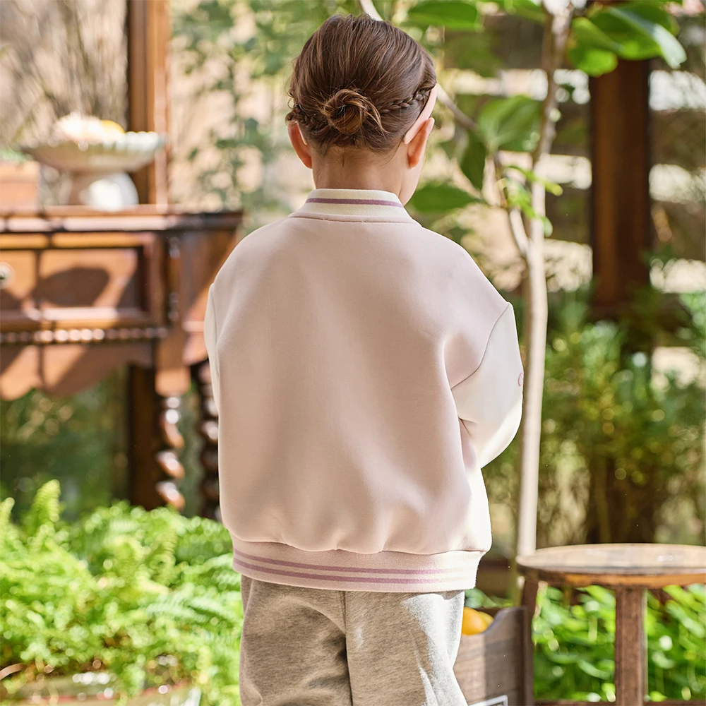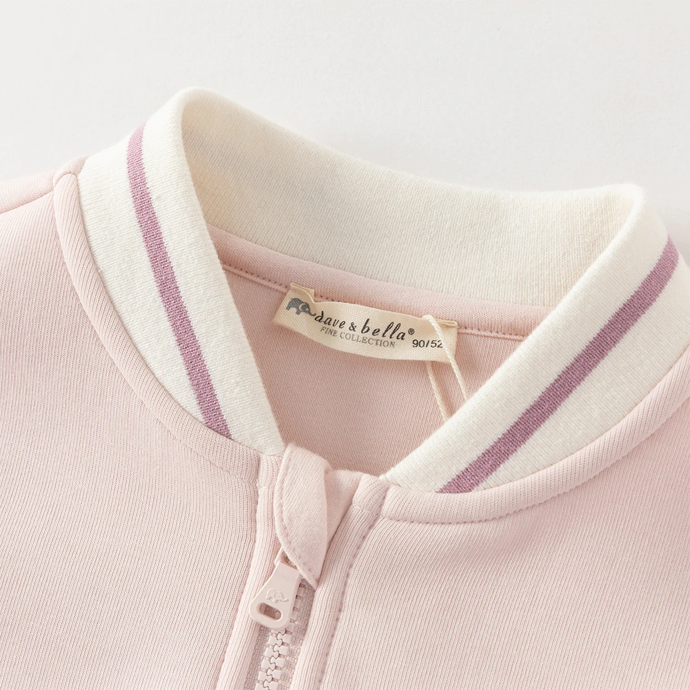 Dave Bella Mädchen Baseball Jacke Herbst Frühling Baby Langarm Rosa Topcoat Beiläufige Gestrickte Oberbekleidung Kinder Kleidung DB1260890