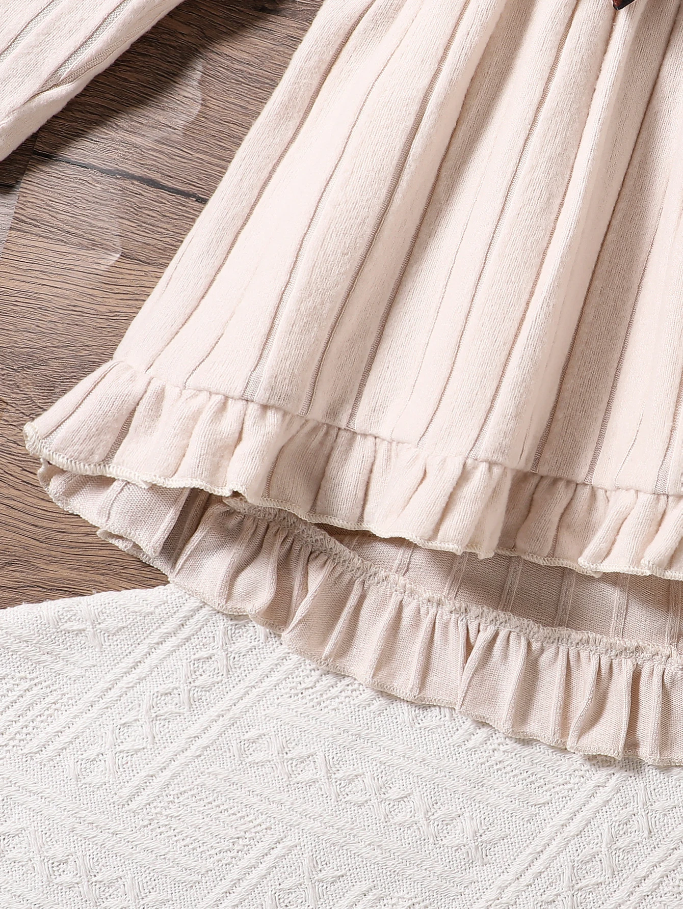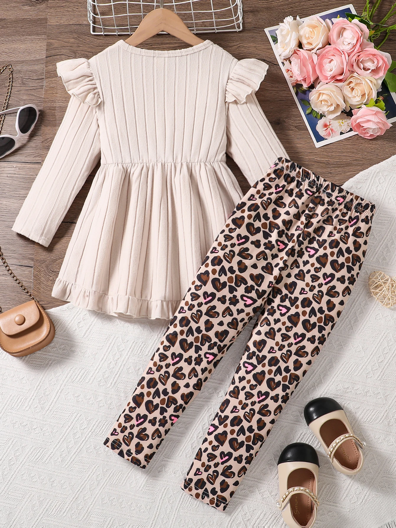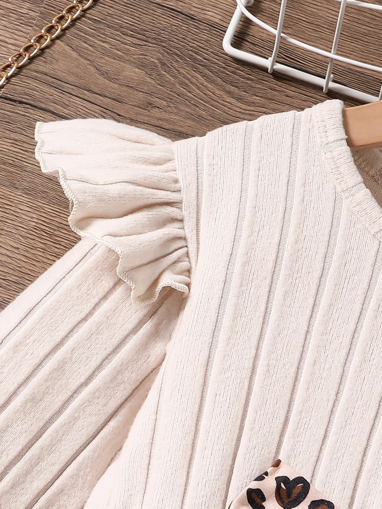 Frühling Herbst Mädchen Nette Mode Casual Kleidung Aprikose Gestrickte Rüschen Langarm Top + Cartoon Voller Druck Elastische Taille Casual hosen Set