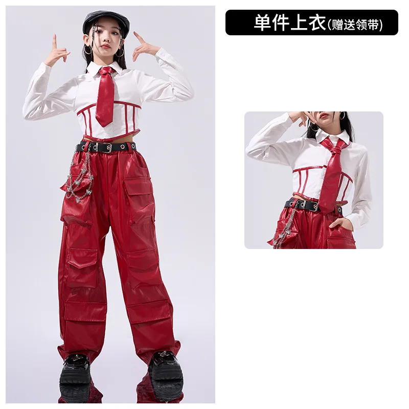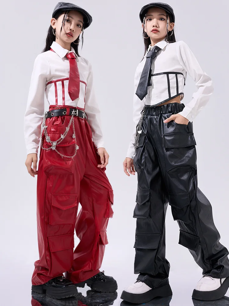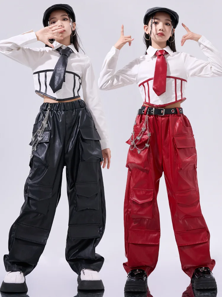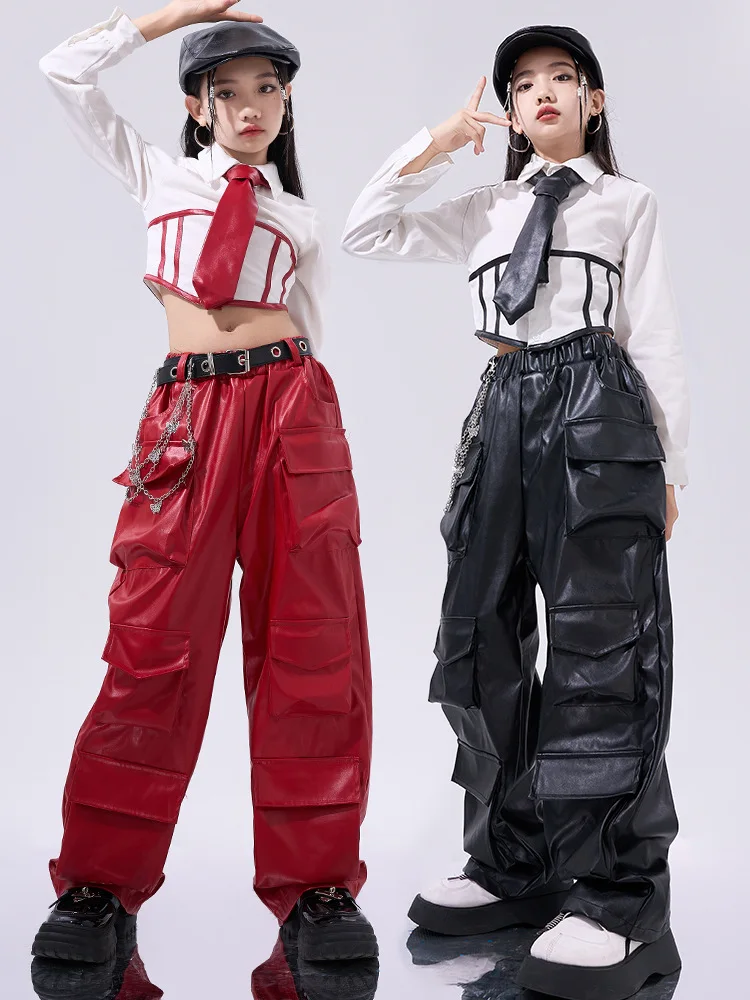 Mädchen Hip Hop Crop Top Pu Leder Cargo Hosen Kind Schuluniform Kostüme Kinder Streetwear Jazz K-pop Street Dance kleidung Sets
