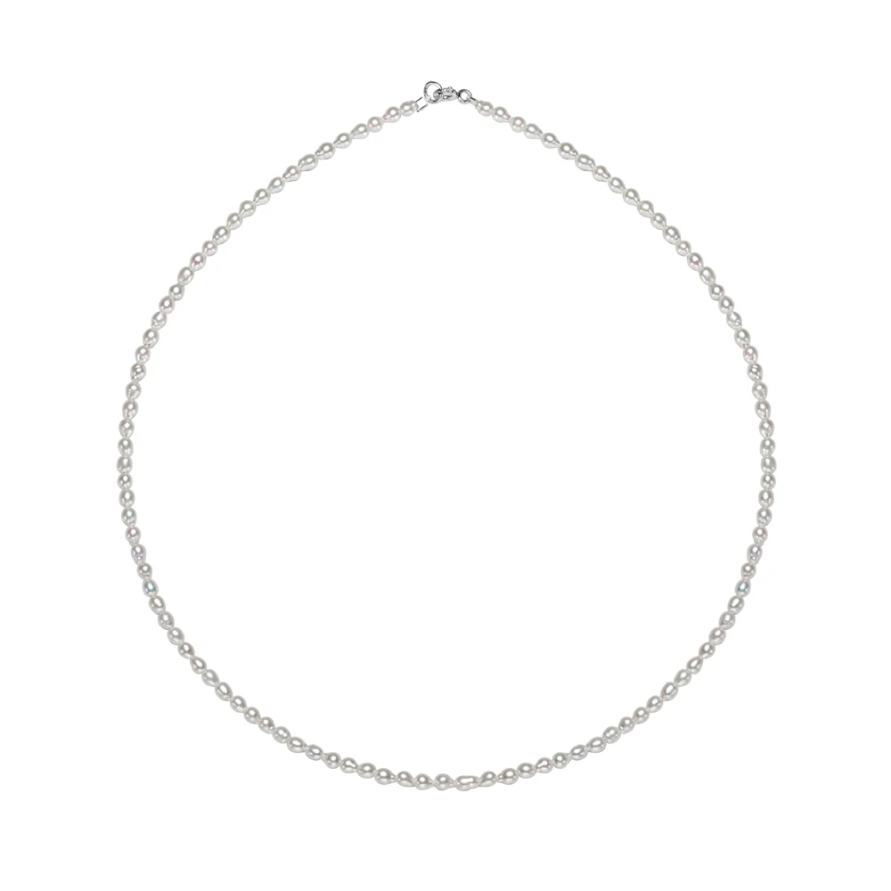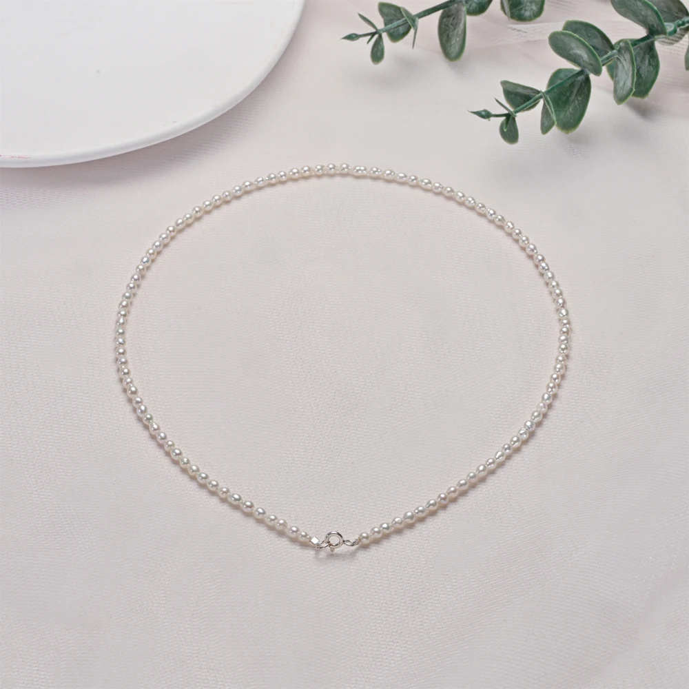 Dainashi 925 Sterling Silber 2,5-3,5 mm Reisform Süßwasserperlen Halsketten 40 cm Länge Kragen Halsketten für Frauen Schmuck Geschenk