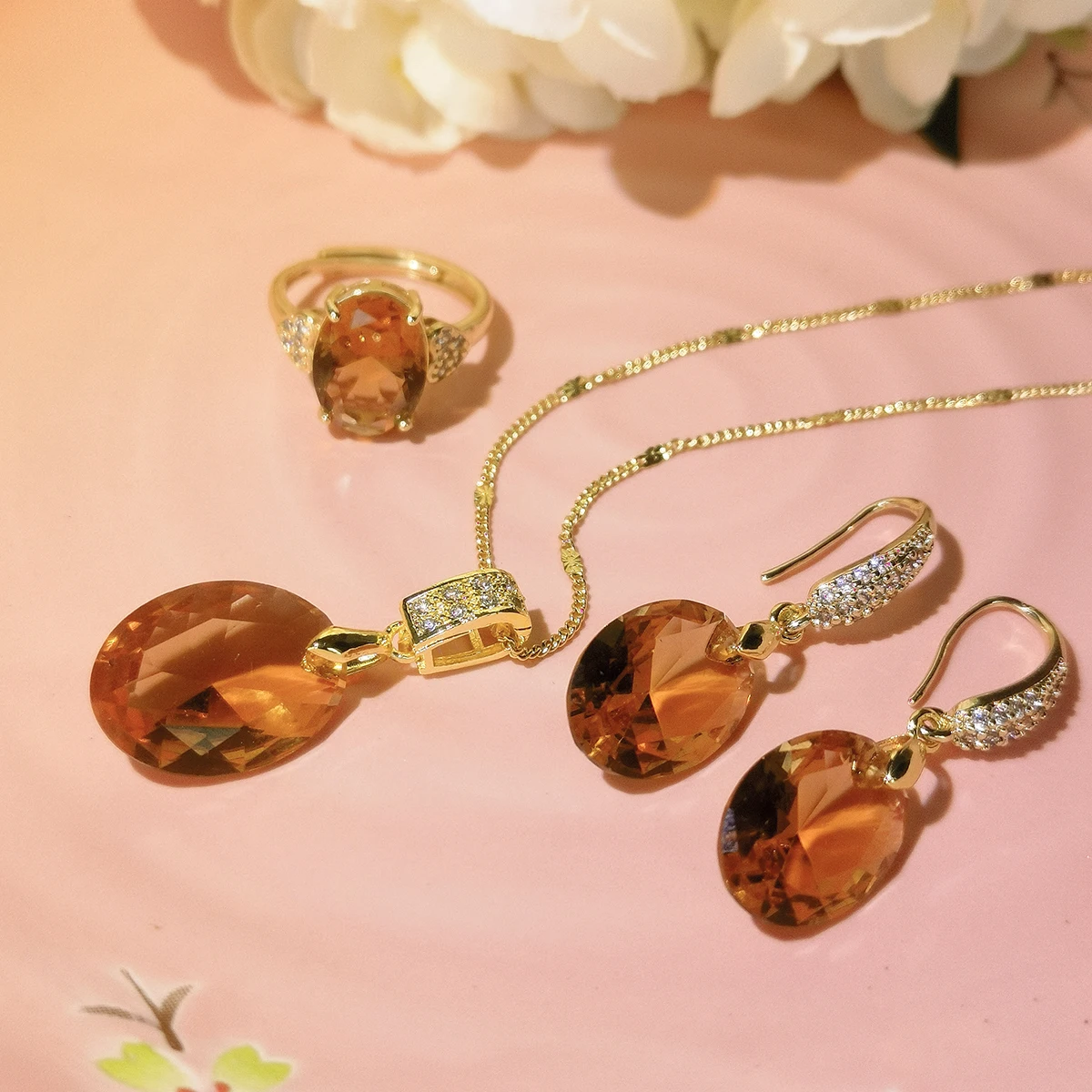 Farbwechselndes Zultanit-Schmuckset für Damen, eleganter ovaler Sultanit-Edelstein-Ring, Ohrringe, Halskette, lichtempfindlich