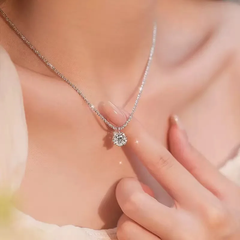 Halskette aus 925er-Sterlingsilber, Zirkon-Anhänger, funkelnde Halskette, Schlüsselbeinkette, Damen-Party-Schmuck, Geschenk
