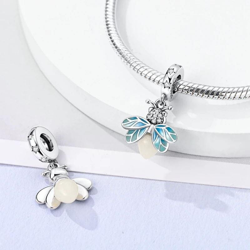 Original 925er Sterlingsilber-Charm-Perlenanhänger, Glühwürmchen, Schmetterling, Biene, Libelle, Perlen, passend für Armbänder, Halsketten, Damenschmuck, Geschenke