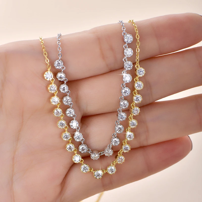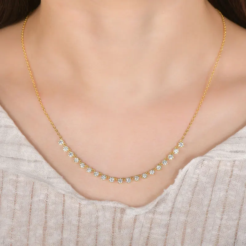 OXTAO Zertifizierte Moissanit-Halskette im Bubble-Stil, 3 mm, D VVS1, für Damen, süße U-Smile-Anhänger-Halskette, Schmuck, 14 Karat Gold gefüllt