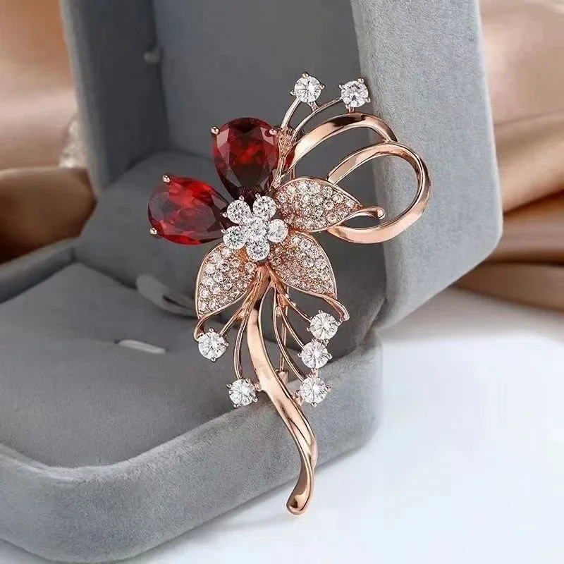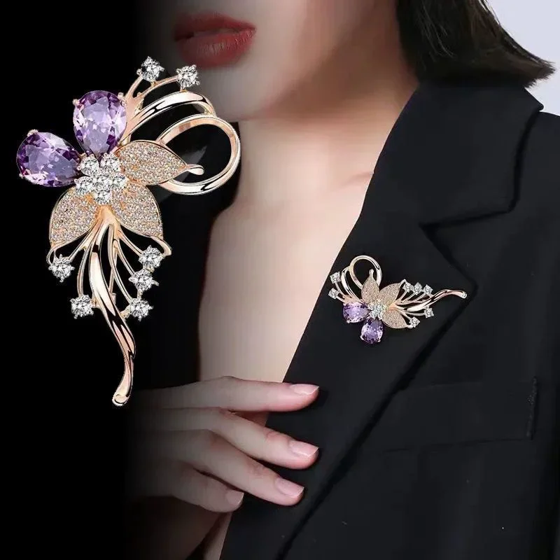 Die Brosche ist aus Zinklegierung (Metall) mit Strass-Steinen gefertigt, modisch und leicht (13g).