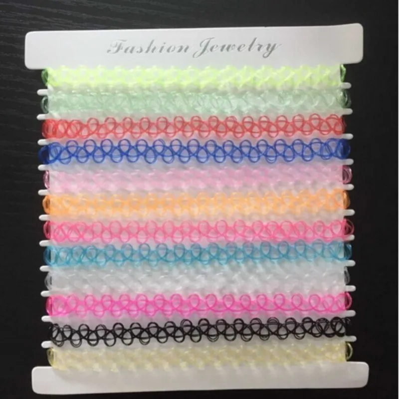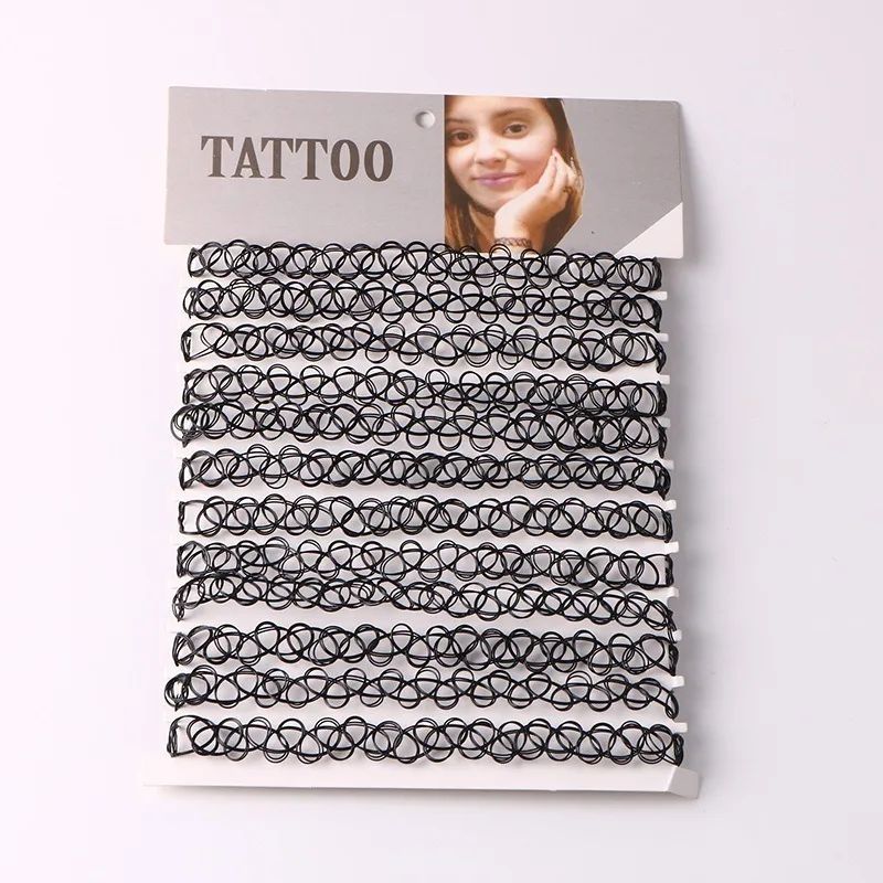 12 stücke Vintage Tattoo Collares Halskette Set Für Frauen Mädchen Elastische Schlüsselbein Kette Bunte Punk Gothic Stretch Halsband Spitze