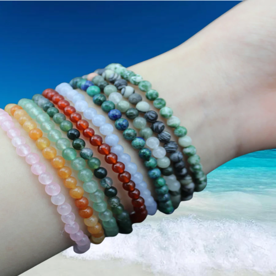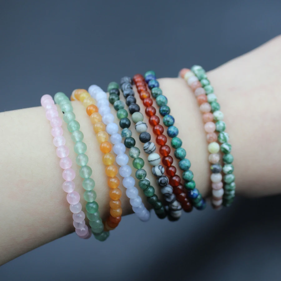 4mm Quarz Achat Perle Naturstein Perlen Armband Lava Rock Tigerauge Schwarz Onyx Kristall Frauen Männer Yoga Heilung Chakra schmuck