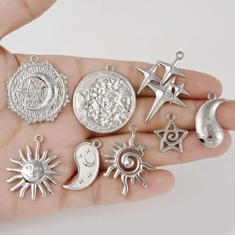 5 teile/los Hohe Qualität Stahl Farbe Pentagramm Stern Sonne Edelstahl Anhänger Für Schmuck Machen Liefert Handgemachte Armband Charme