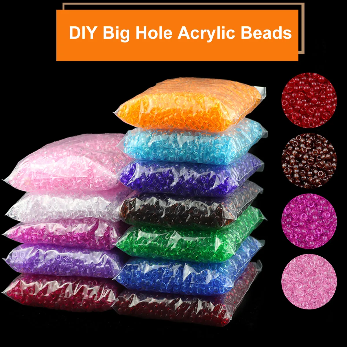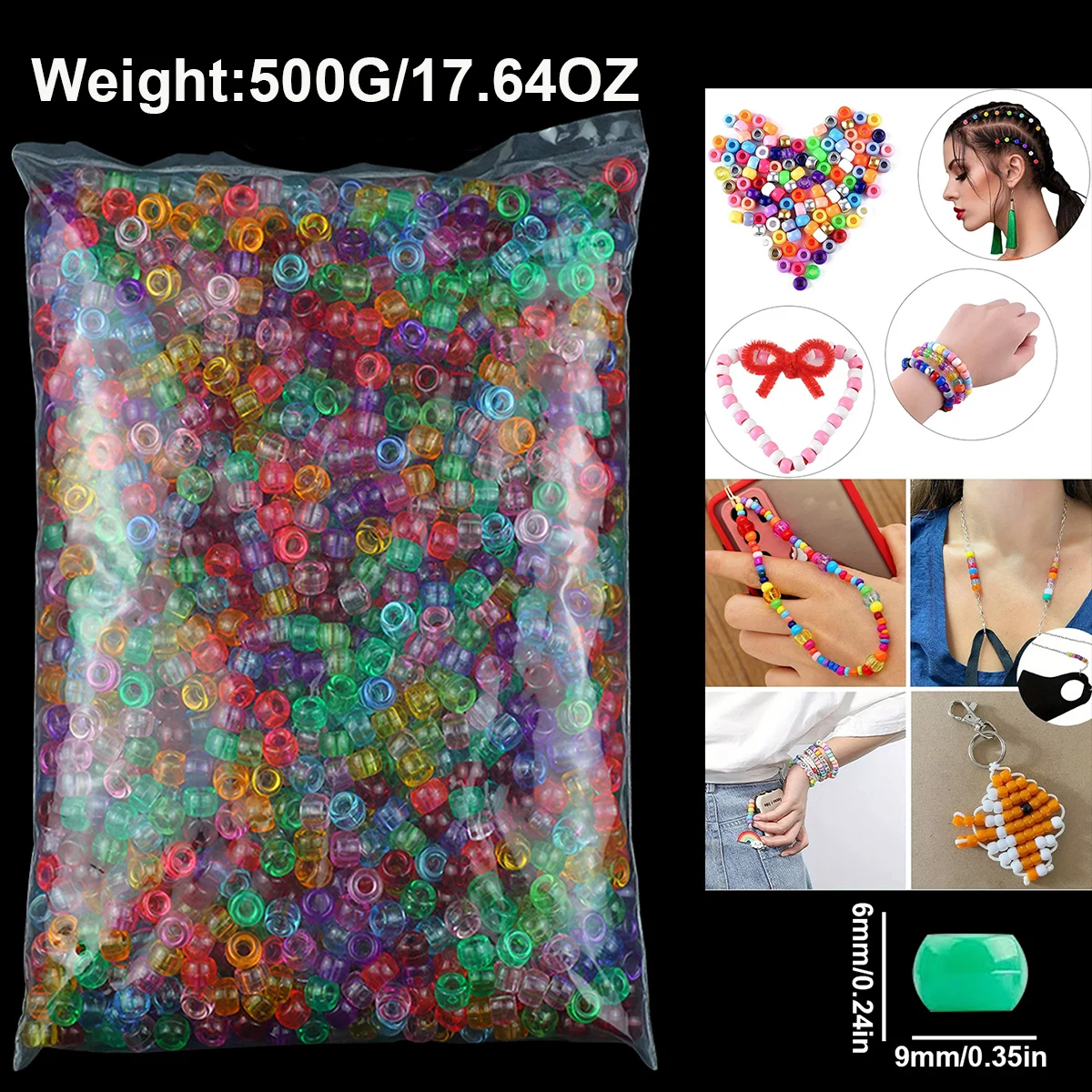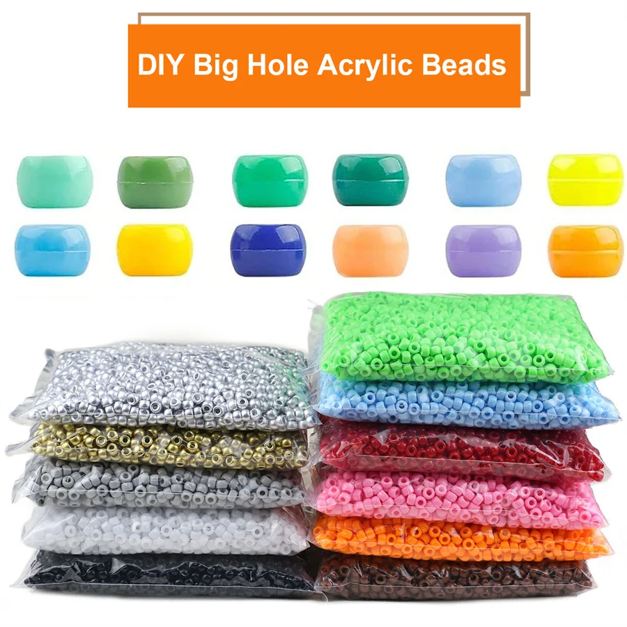 500 gr/beutel ca. 1850 stücke 6x9mm Acryl großes Loch Pony Perlen für Schmuck machen Freundschaft Armbänder Schlüssel anhänger Handwerk Zubehör