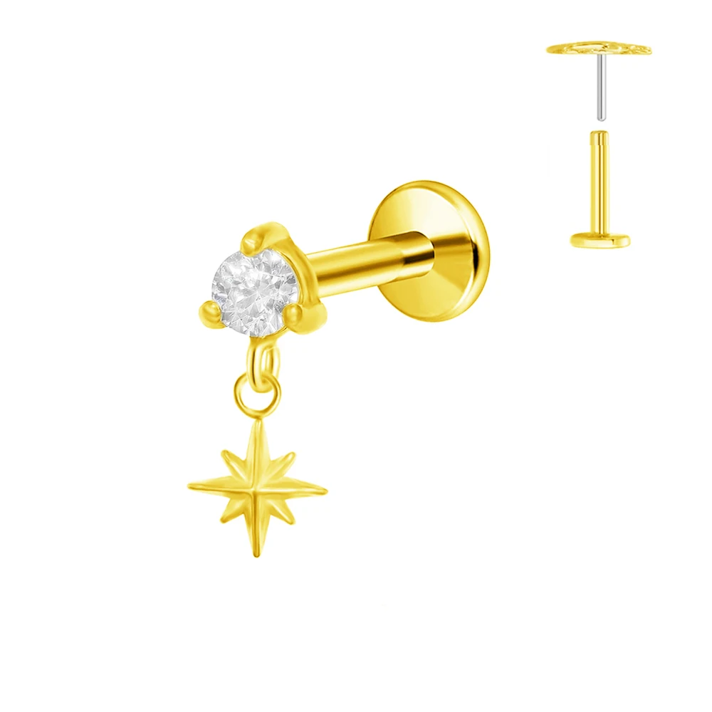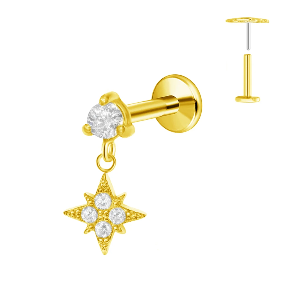 ASTM F136 G23 Titan Blumen Mond Stern Labret Piercing Push In Ohrringe Tragus Threadless Flat Back Piercing Körperschmuck
