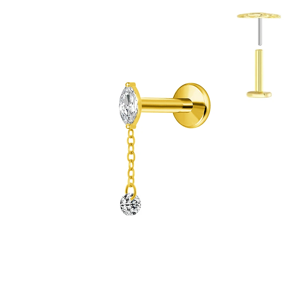 ASTM F136 G23 Titan Pferdeauge Zirkon Krone Quaste Punktion Flacher Ohrring Knorpelkette Push-in Labret Ohrstecker Piercing