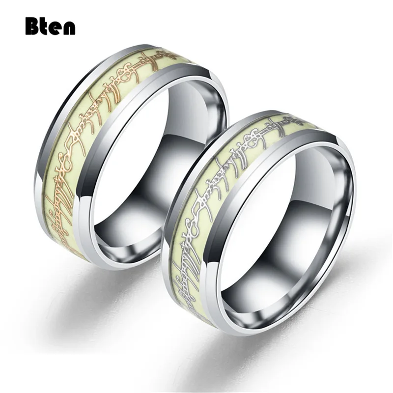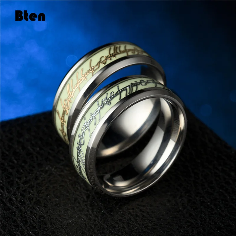 Bten Leuchtender Ring Schwarz Mode Mann Minimalistischer Edelstahlring Leuchtender Ring Paar im Dunkeln Schmuck Schwarz Domineering