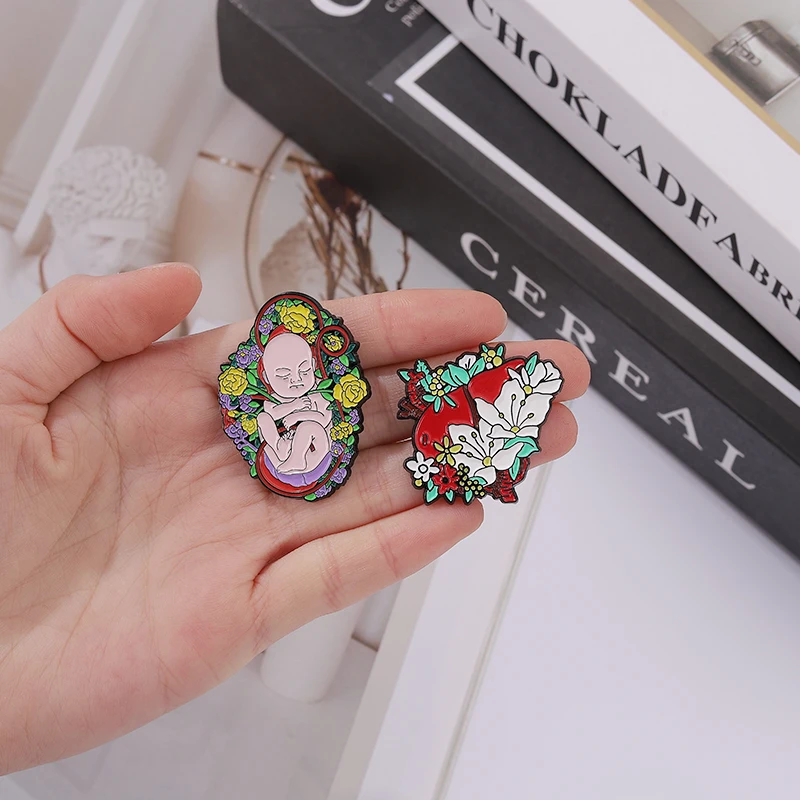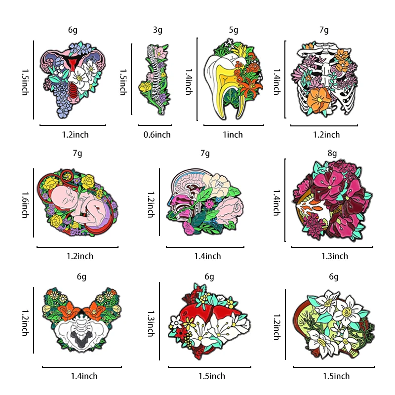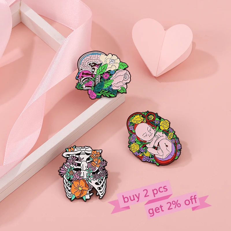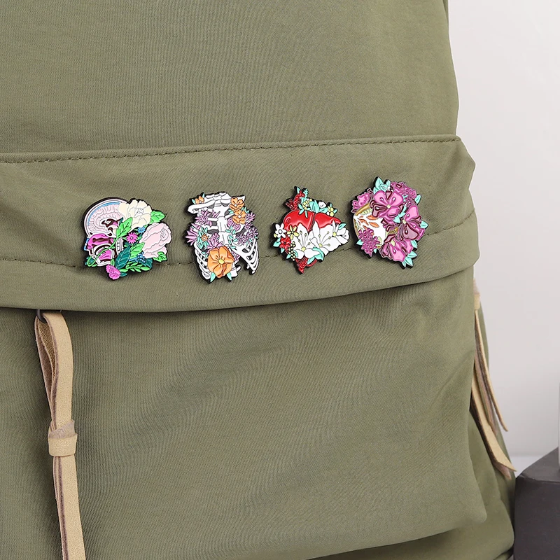 Floral Organe Emaille Pins Fötus Gebärmutter Zahn Rippe Leber Niere Becken Gehirn Lunge Broschen Revers Abzeichen Schmuck Geschenk für Freunde