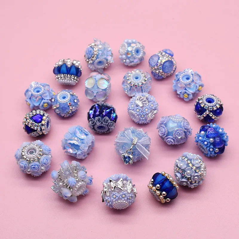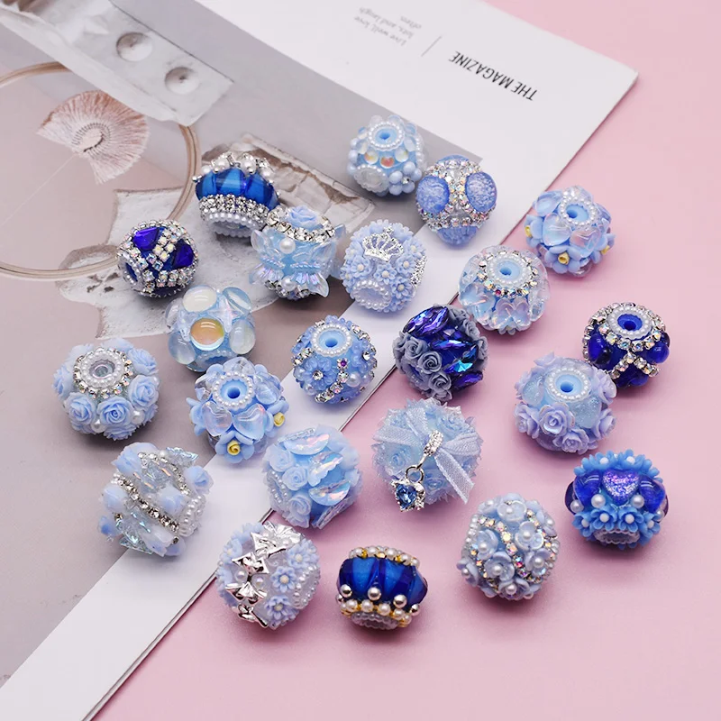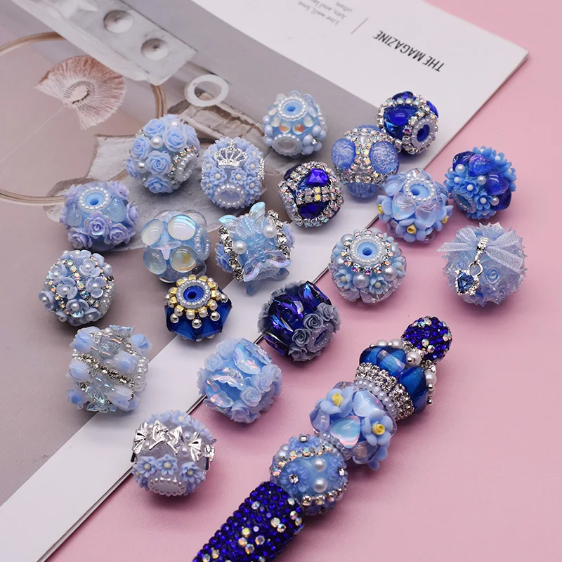 Handgefertigte Acrylperlen für die Schmuckherstellung, blaue Blumen-Stiftperlen, DIY-Perlenstift, Schlüsselanhänger, Telefonkette, neue Farbe, 3 Stück, 18–25 mm