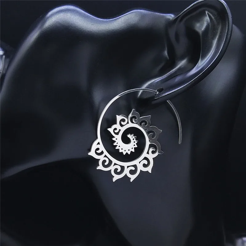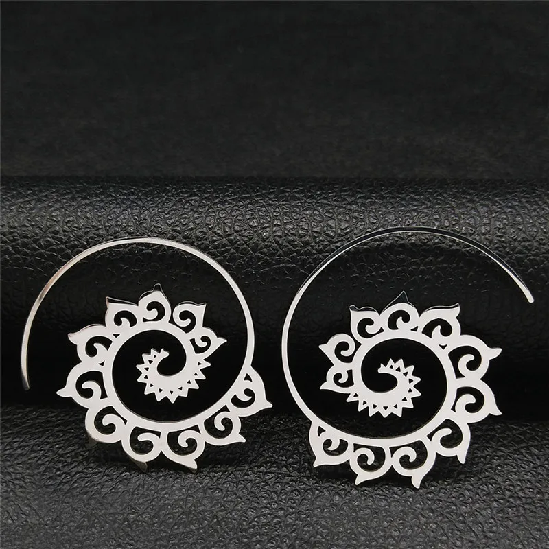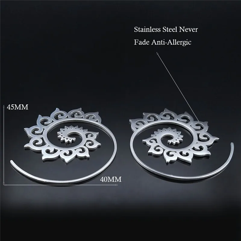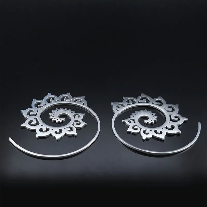Indische Tribal Ethnische Edelstahl Spirale Creolen Böhmischen Mandala Blume Boho Ohrringe Frauen Schmuck aros mujer E9205