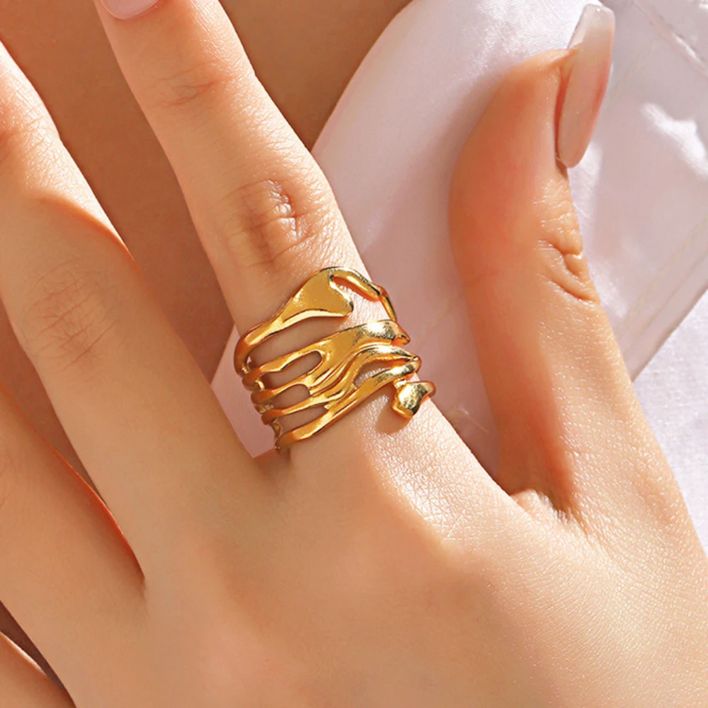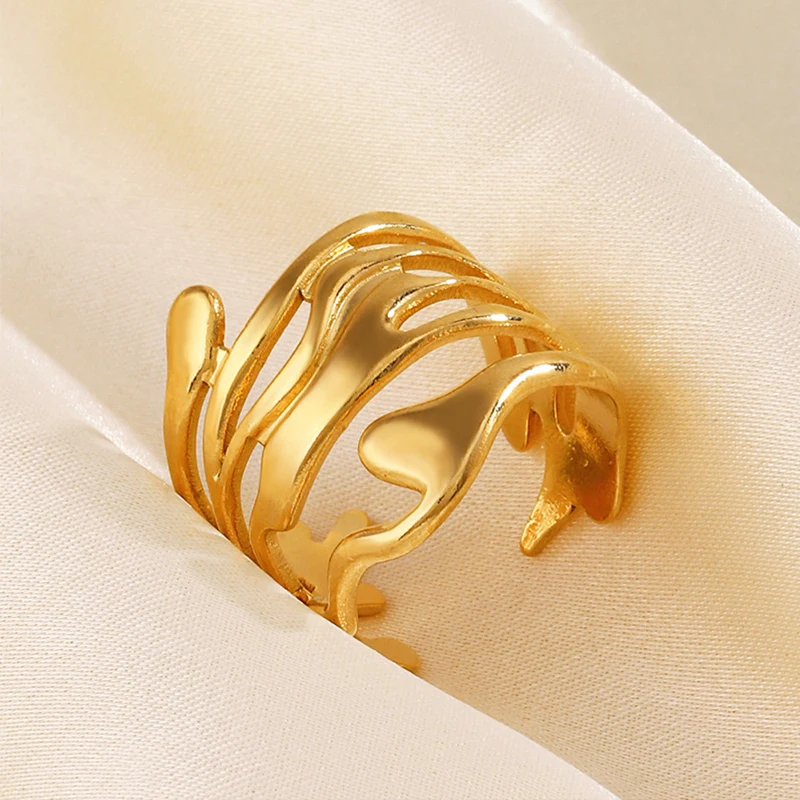 LATS Edelstahl Lava Unregelmäßiger Hohlring für Frauen Metallstruktur Wasserdicht Täglich Einfach Stilvoll Goldene Ringe Schmuck