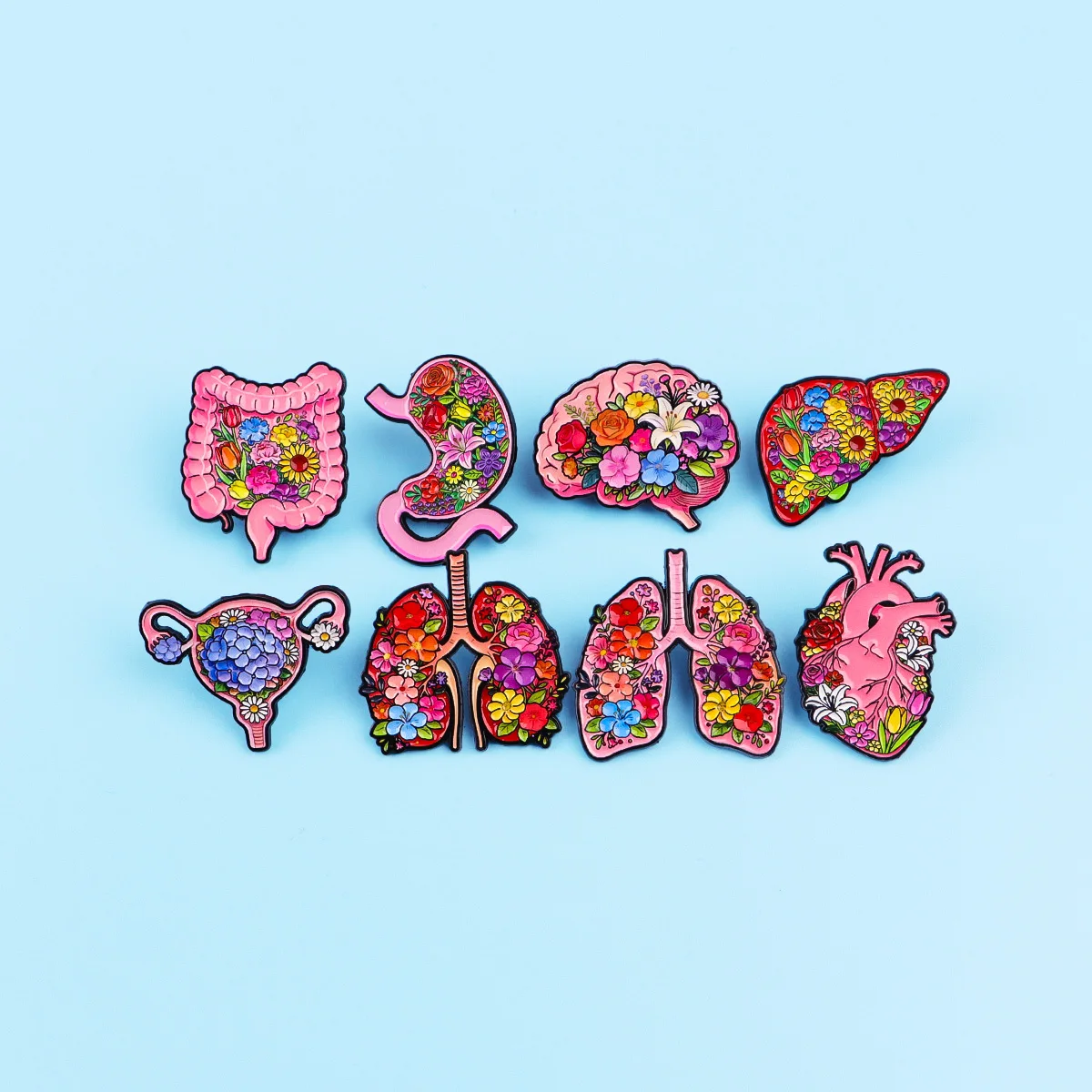 Medizinische Emaille-Anstecknadeln mit Blumenmotiven für Krankenschwestern und Ärzte, Lustige Broschen für Rucksäcke und Geschenke für Medizinisches Personal