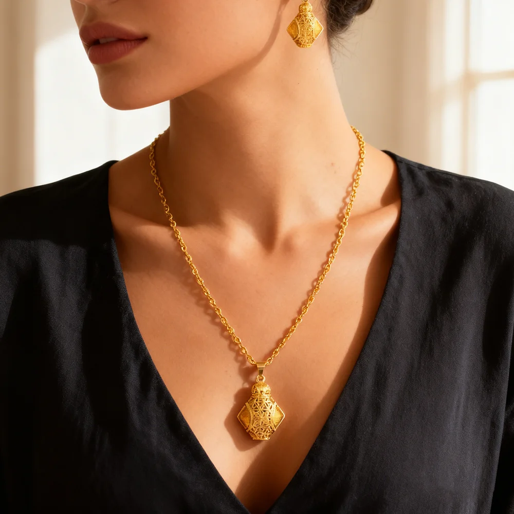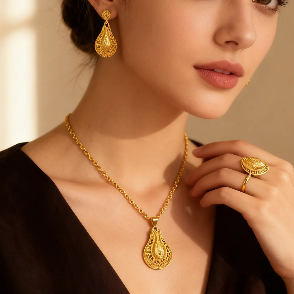 Mode Gold Schmuck Set Edelstahl Ohrringe Halsketten für Frauen einfache Persönlichkeit Geschenk Hochzeit Party Zubehör