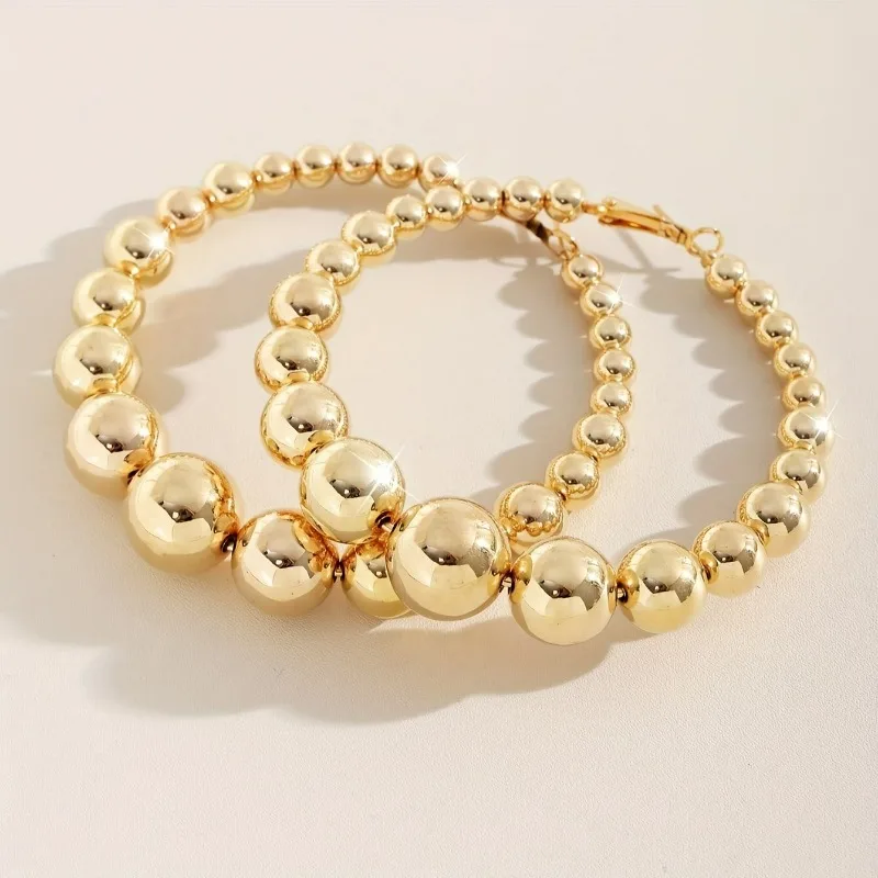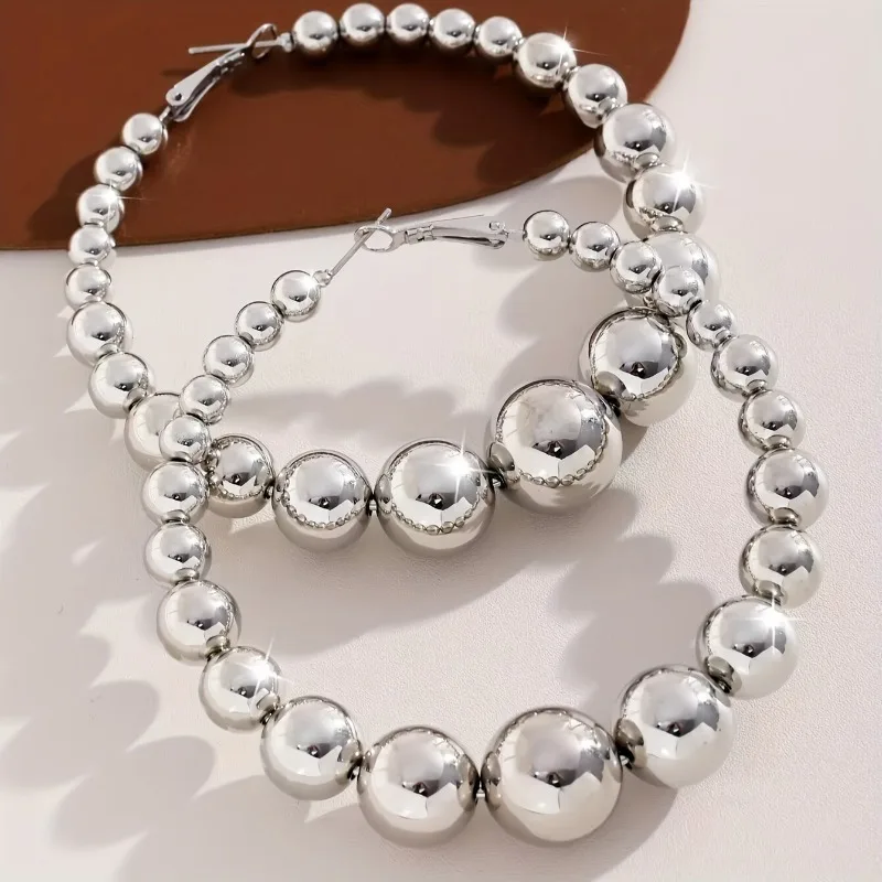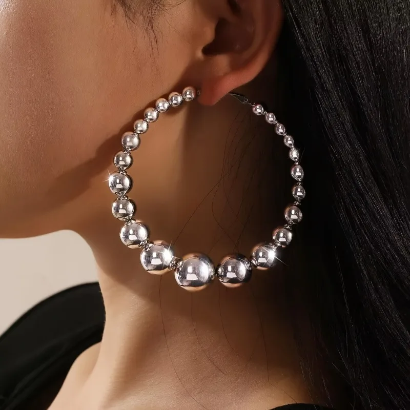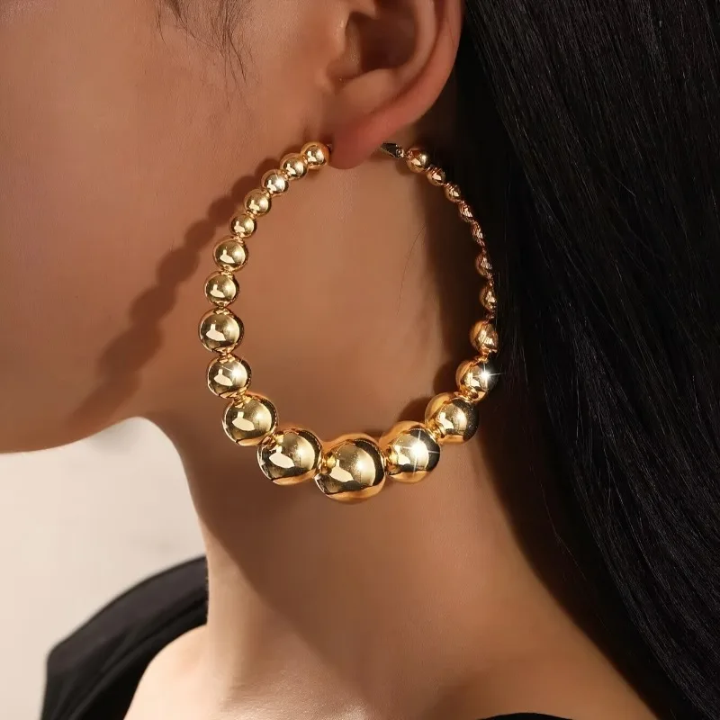 Mode Runde Kugel Perlen Große Kreis Creolen für Damen Übertrieben Design Zubehör Frauen Hochzeit Schmuck Geschenke