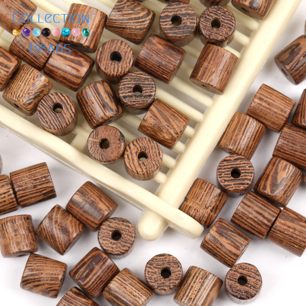 Natürliche zylindrische runde Wenge Holzperlen Spacer lose Holzperlen für Schmuckherstellung Armband DIY Zubehör
