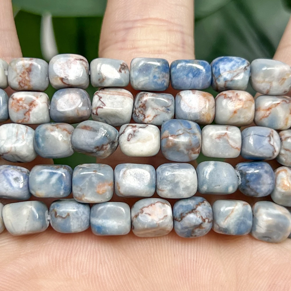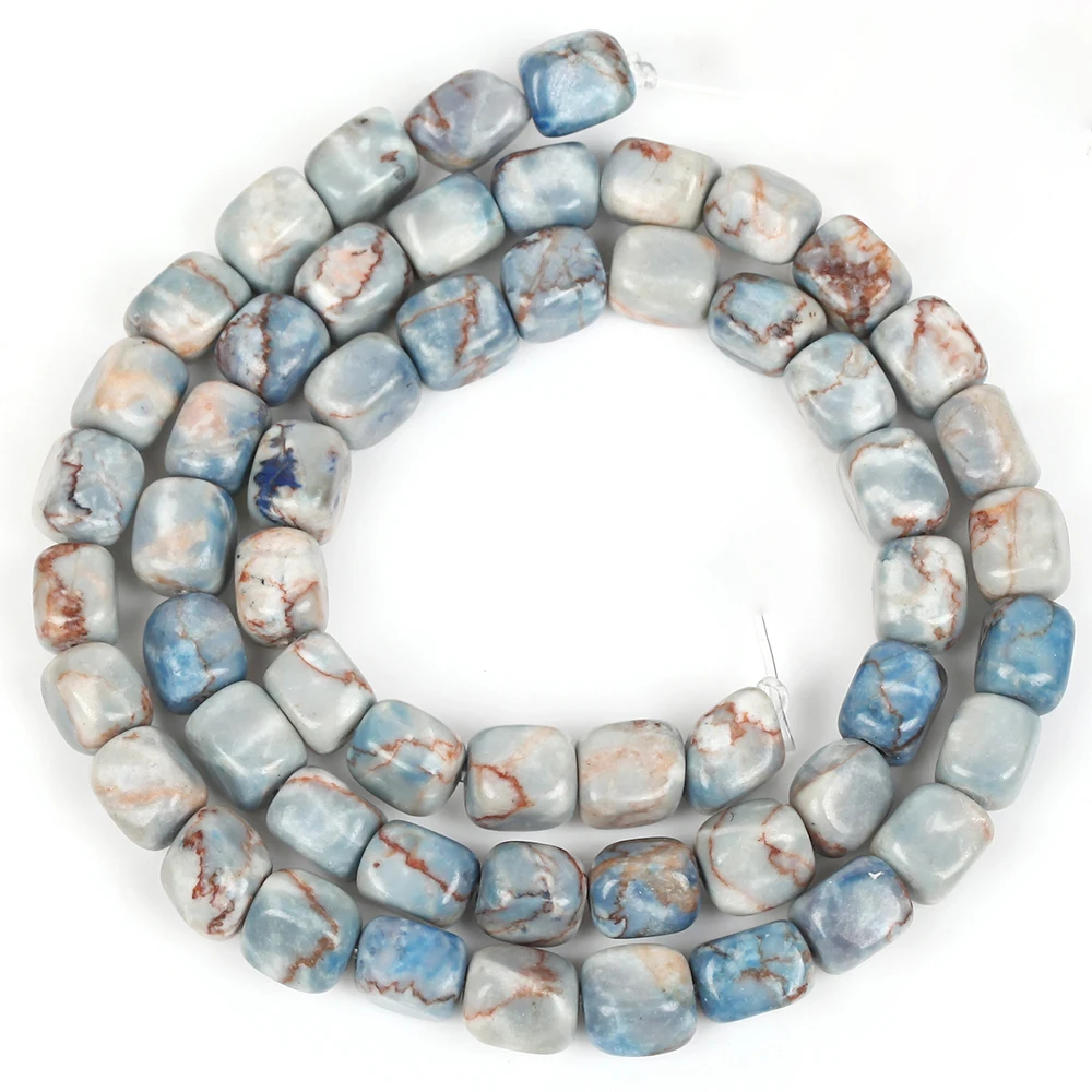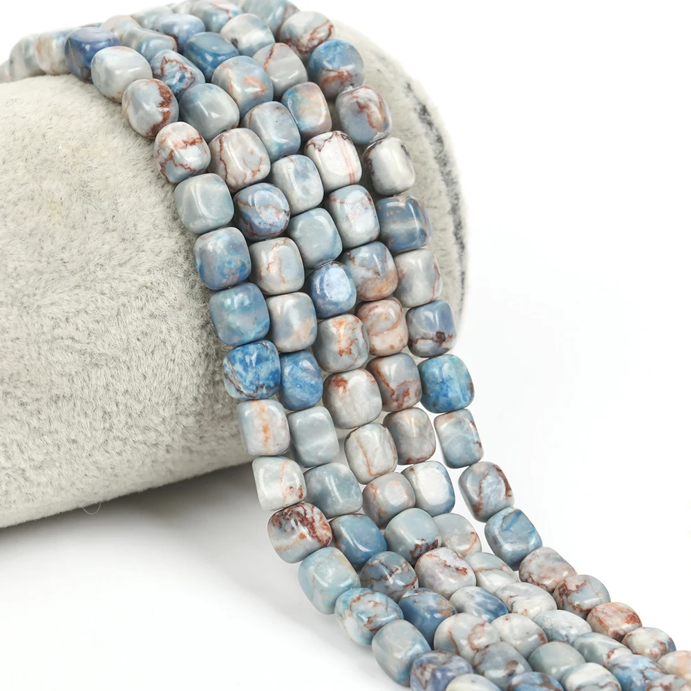 Natursteinperlen, 6 x 8 mm, blauer Meeressediment, türkisfarbener Jaspis, quadratische Perlen für Schmuckherstellung, DIY-Armband, Halskette, 38,1 cm
