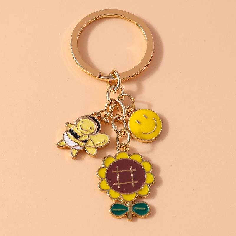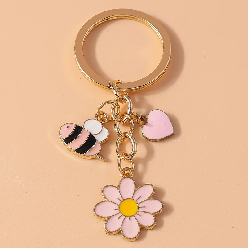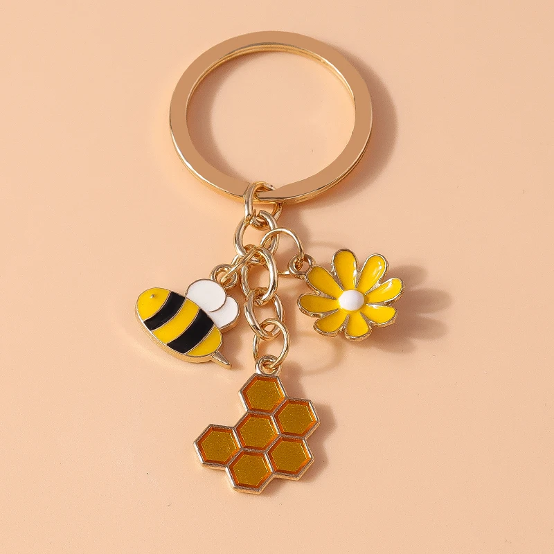 Niedliche Emaille Biene Schlüssel bund Blume Schlüssel ringe Anhänger für Auto Schlüssel halter Frauen Mädchen Handtasche Zubehör handgemachte Schmuck Geschenk