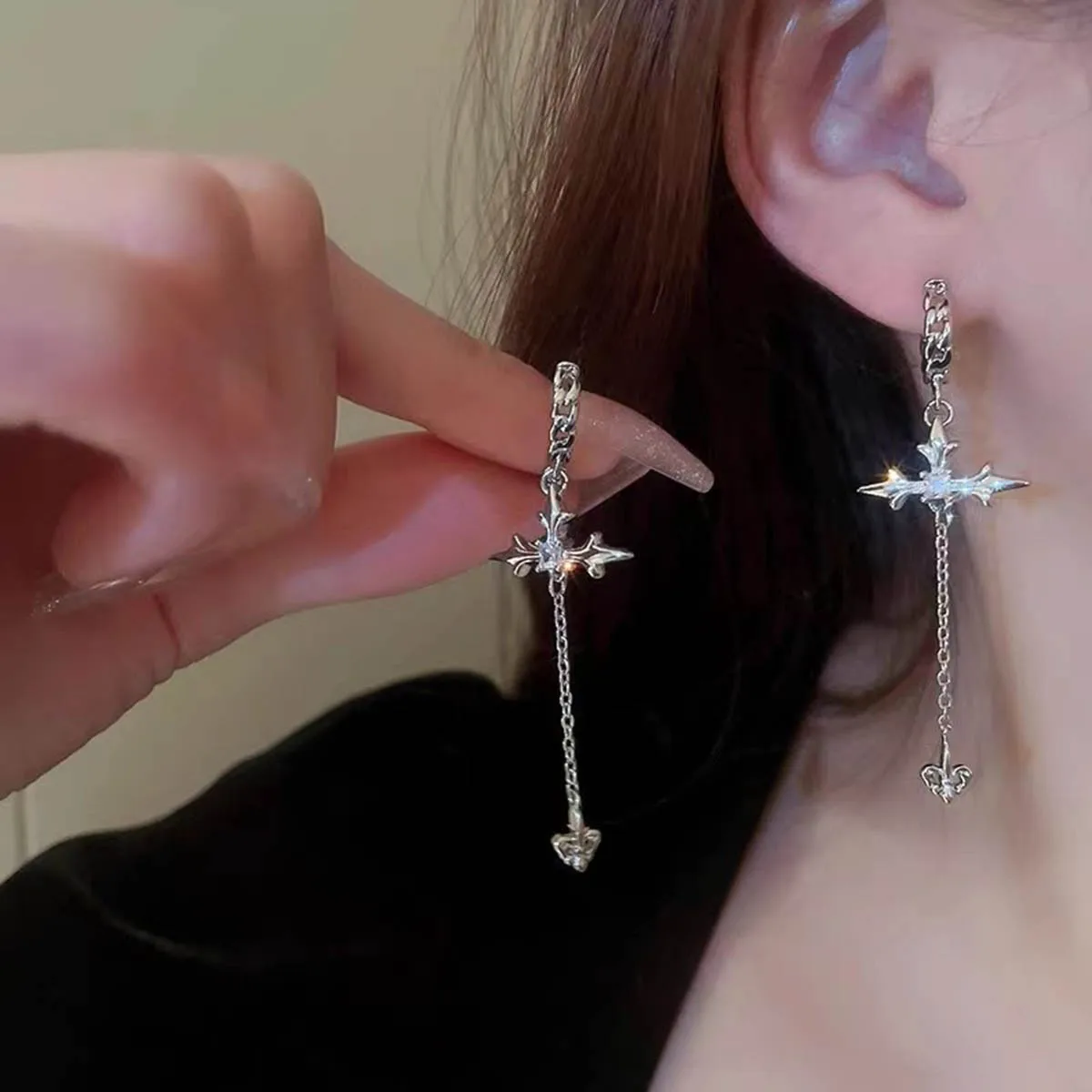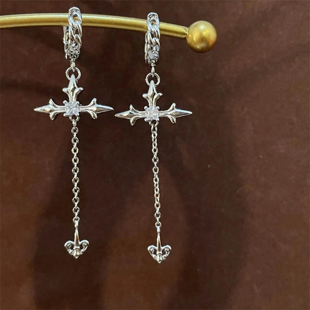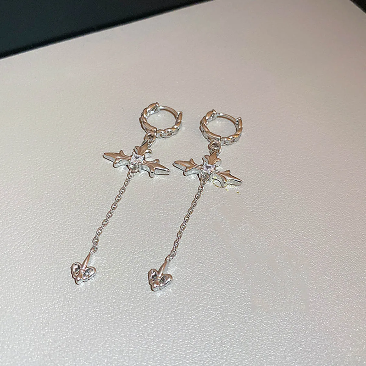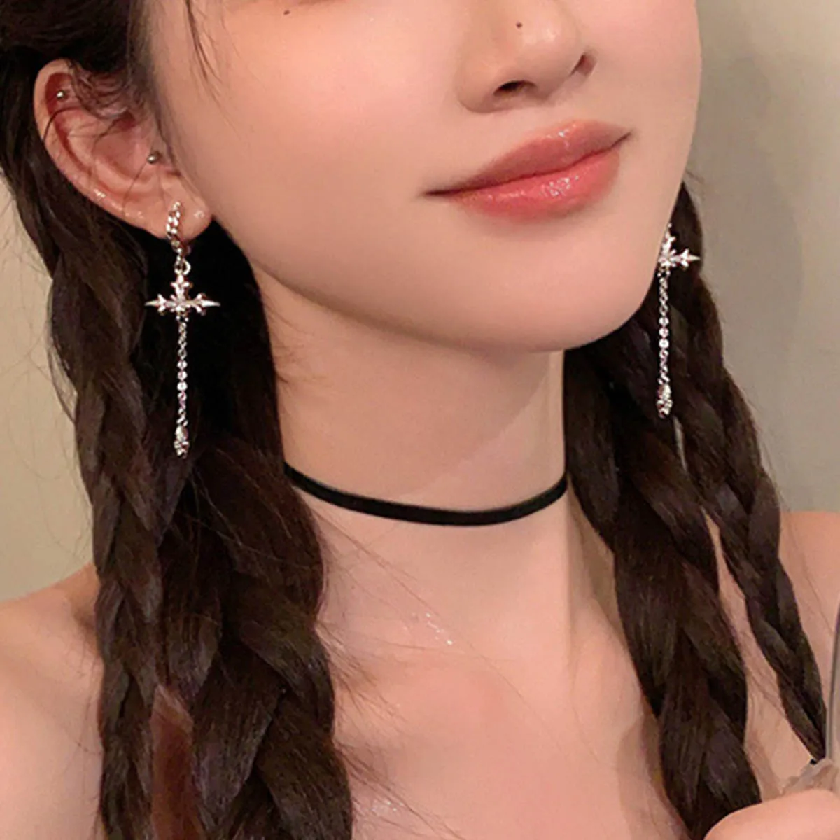 Persönlichkeit Mode Zirkon Kreuz Quaste Hängen Ohrringe für Frauen Pendeln Temperament Kleine Hoop Ohrring Partei Schmuck Geschenk