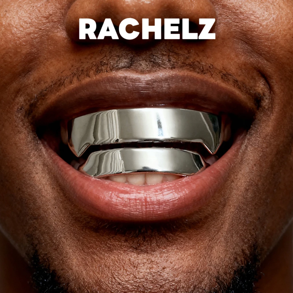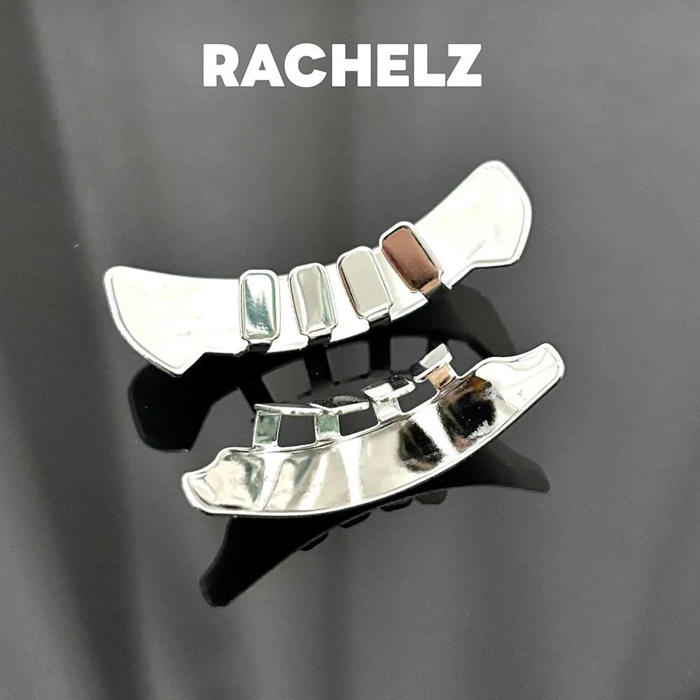 RACHELZ Cyberpunk Glatte Oberfläche Quadratische Zähne Grillz Fangs Hip Hop Futuristische Glänzende Zahnkappen Für Frauen Männer Schmuck Geschenk