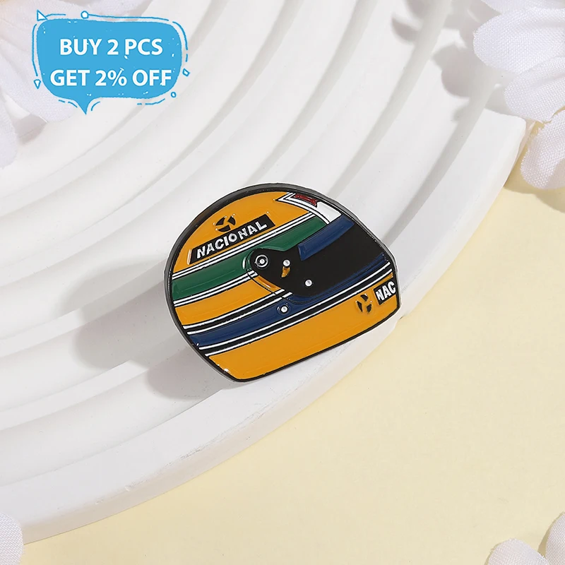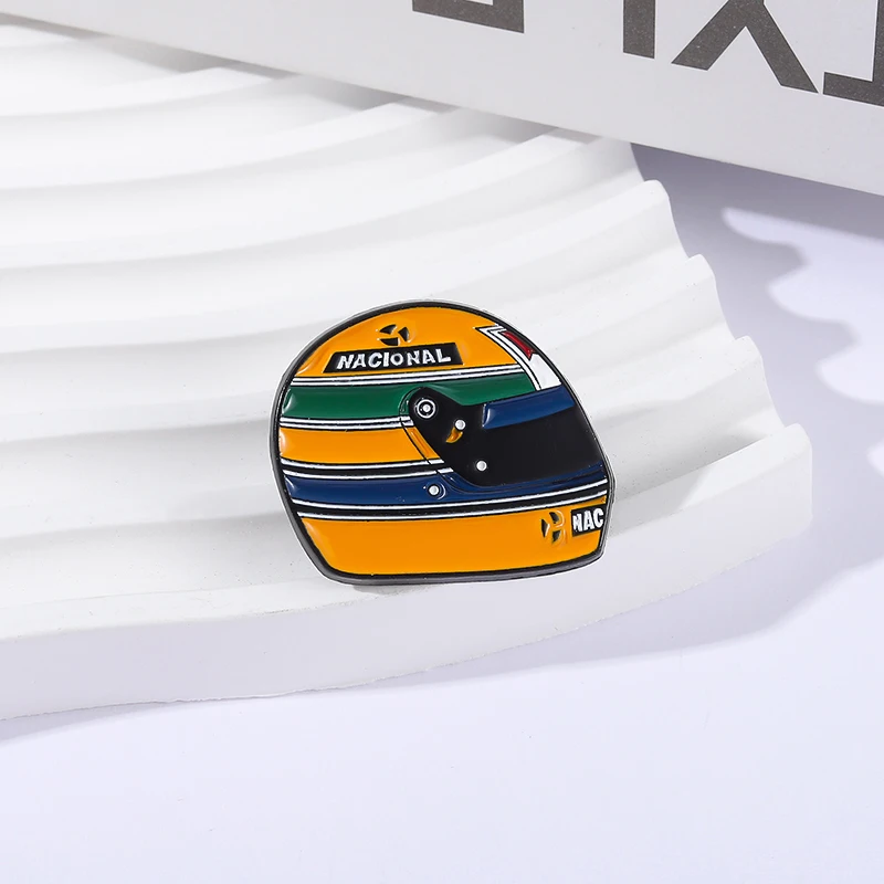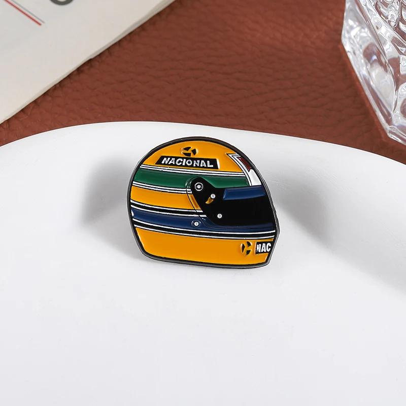 Rennfahrer Emaille-Pins Ayrton Senna Helm Metall-Broschen Modische Anstecknadeln Rucksack Kleidung Schmuck Geschenk für Freunde