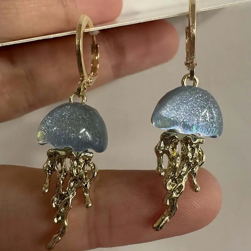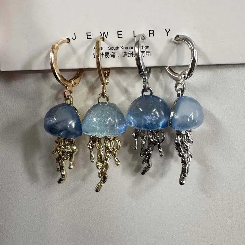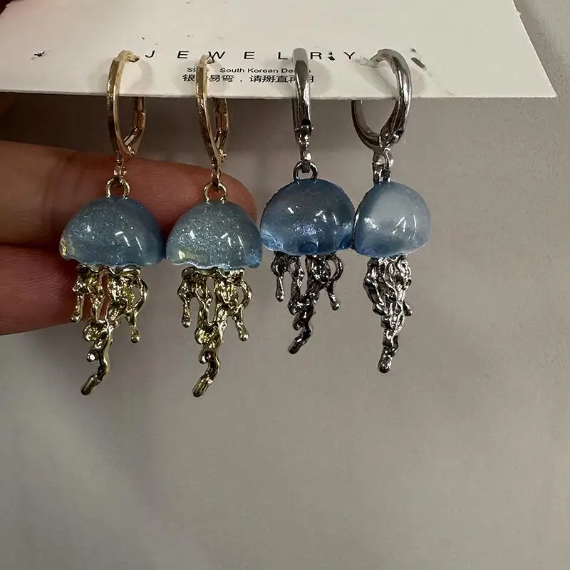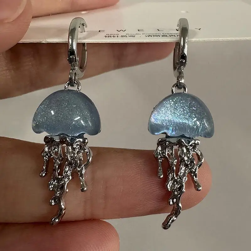 Süße blaue Qualle Ozean Anhänger Ohrringe für Frauen Mädchen einzigartige ästhetische Charme 2000er Jahre Harajuku EMO Vintage Schmuck Zubehör