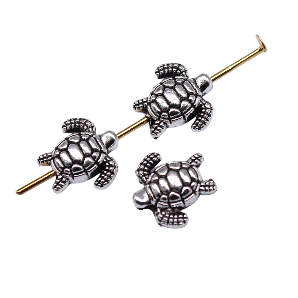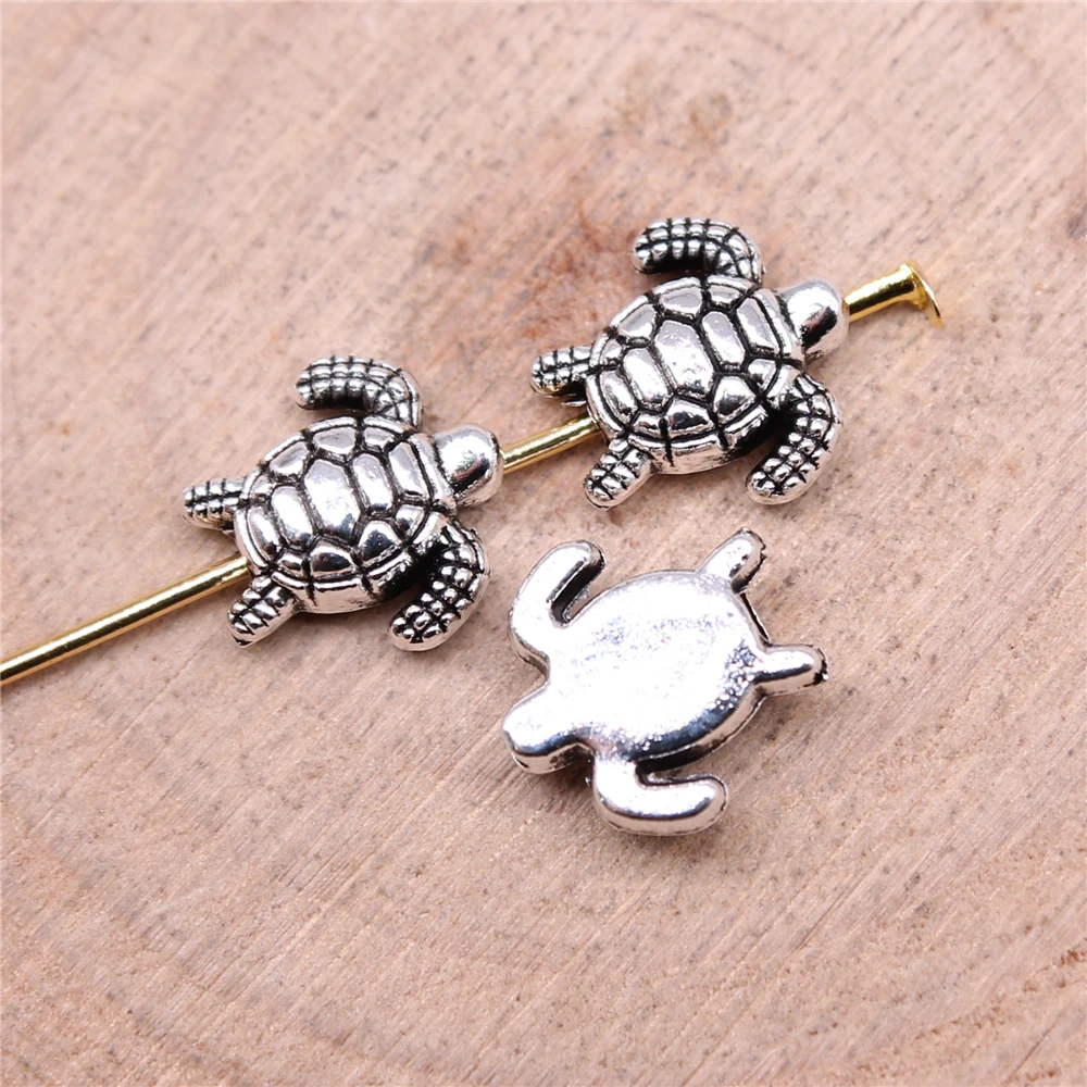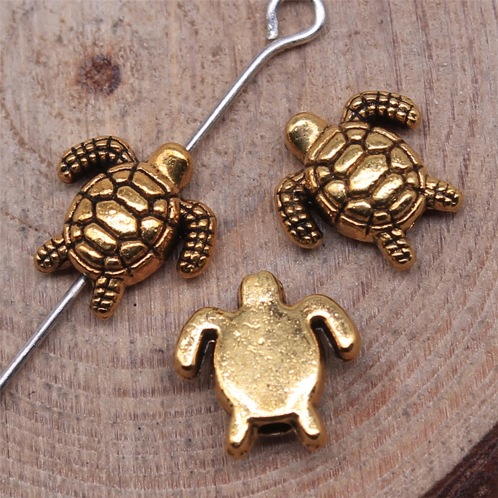 WYSIWYG 20 Stück 10 x 10 mm Antik-Silber-Farbe, antikes Gold, Schildkröte, kleines Loch, Perlen für Schmuckherstellung, DIY-Schmuckzubehör