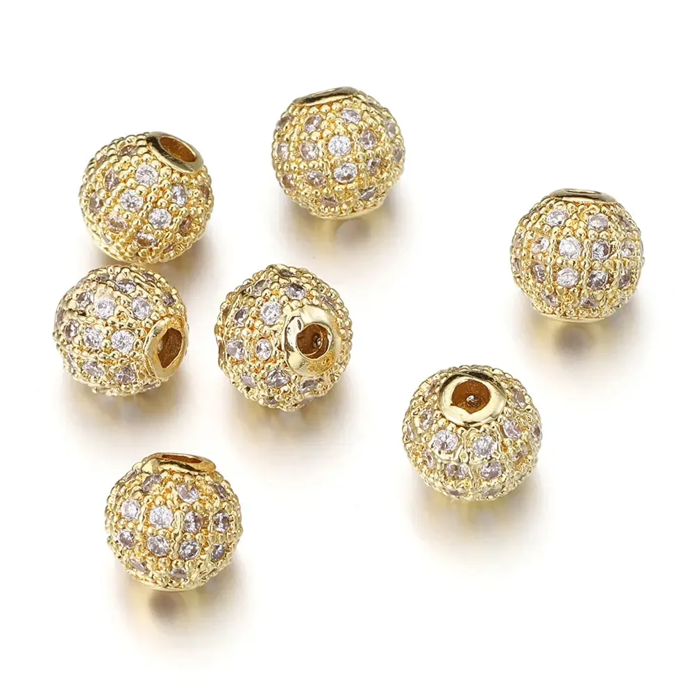 5 Stück Metall-Messing Mikro-Pavé Zirkonia Runde Abstandhalter Lose Perlen für DIY Charms Halskette Armband Schmuckherstellung Zubehör