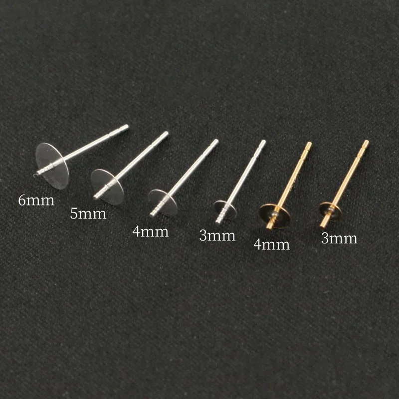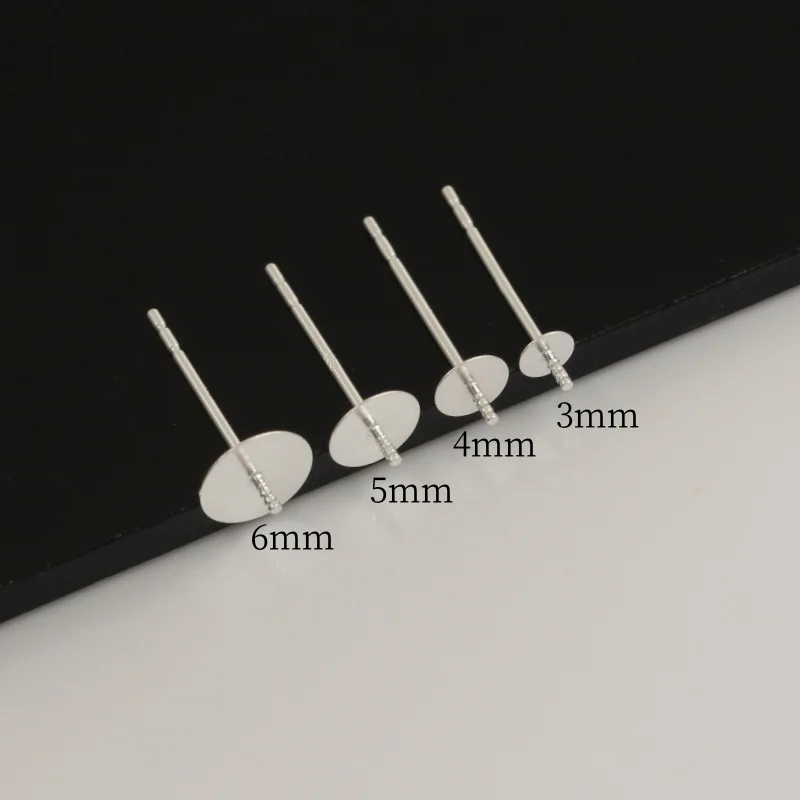 Sterling Silber Flache Ohrstecker mit Stift für Halbgebohrte Perlen, 925 Silber Ohrstecker-Basis 3/6mm