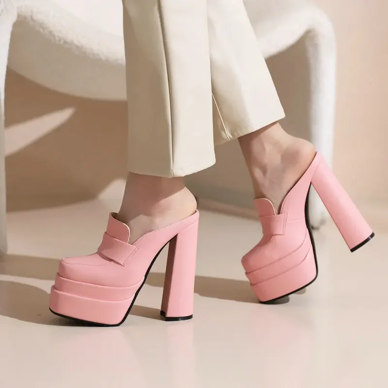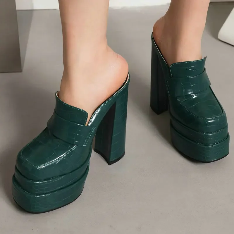 Echtes Leder Einlegesohle Pad Lila Olive Farbe Frauen Schuhe Closed Toe Block High Heels Rutsche Sandalen Frauen Maultiere Slip-auf Hausschuhe