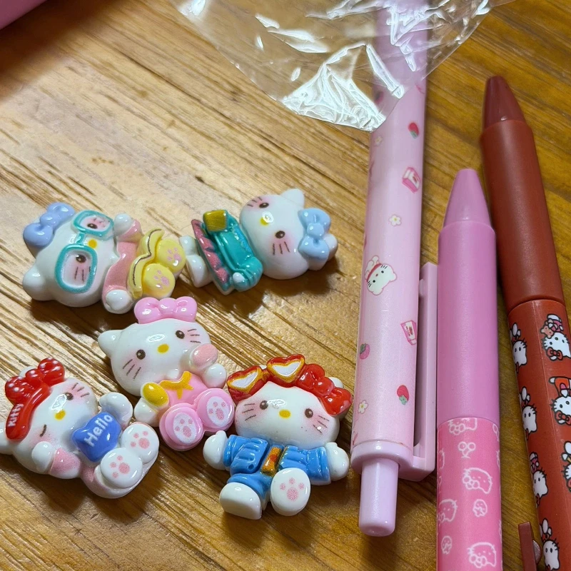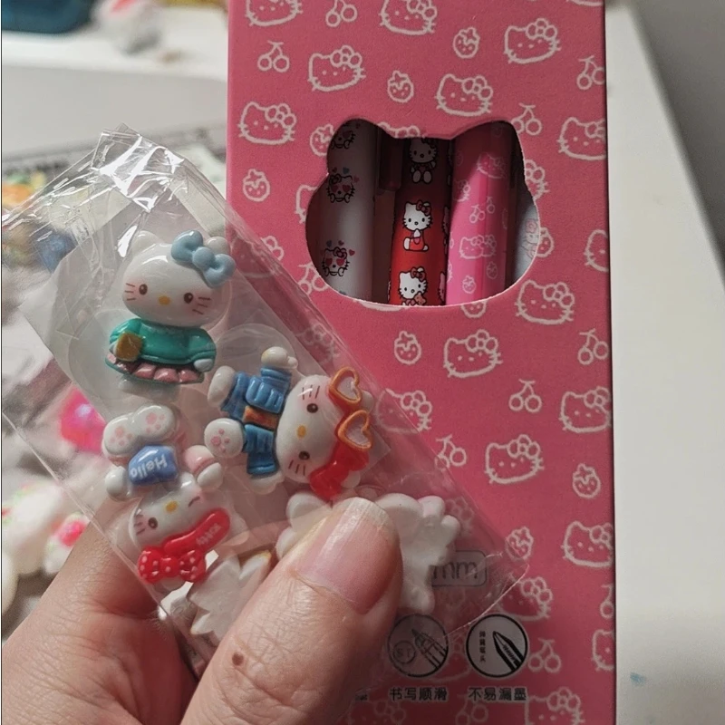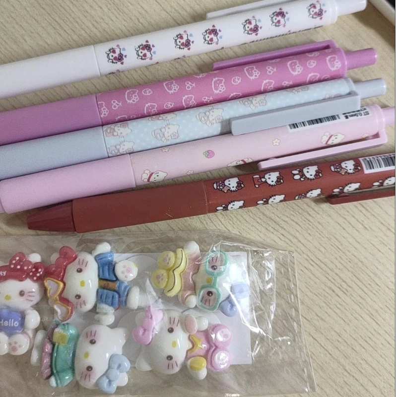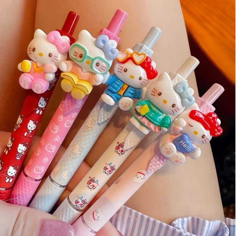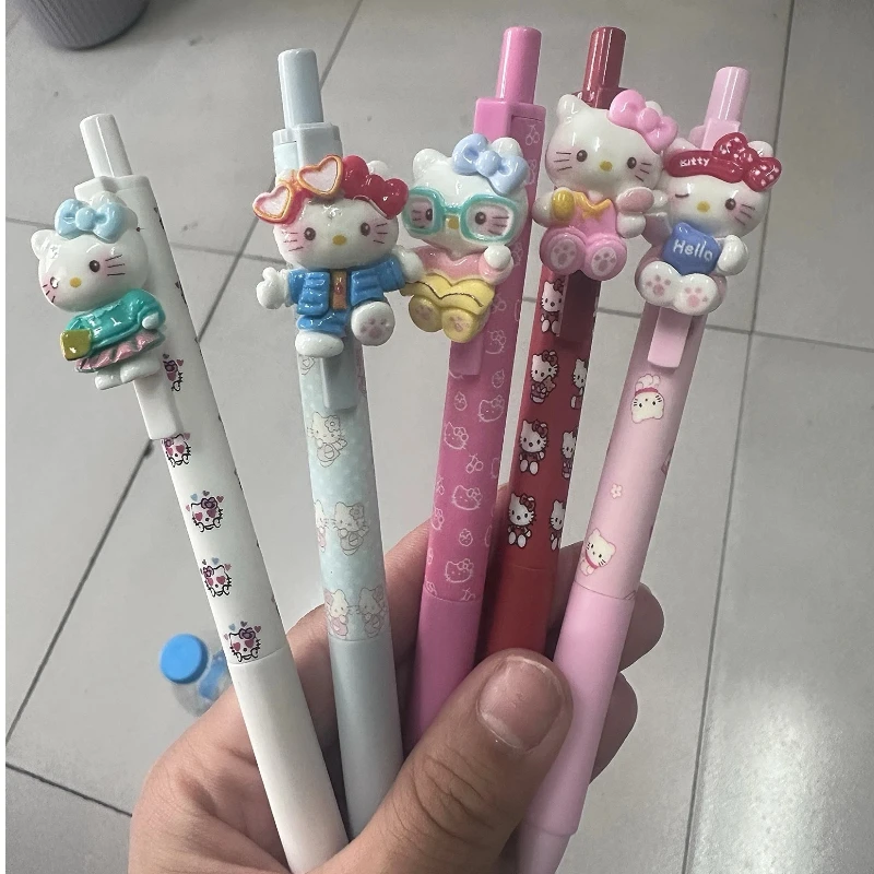 5-teiliger süßer Kitty-Press-Kugelschreiber, mehrfarbig, Cartoon-Anime-Styling-Schreibstift, 0,5 mm, schwarz, schnell trocknend, Unterschriftenstift, Geschenk