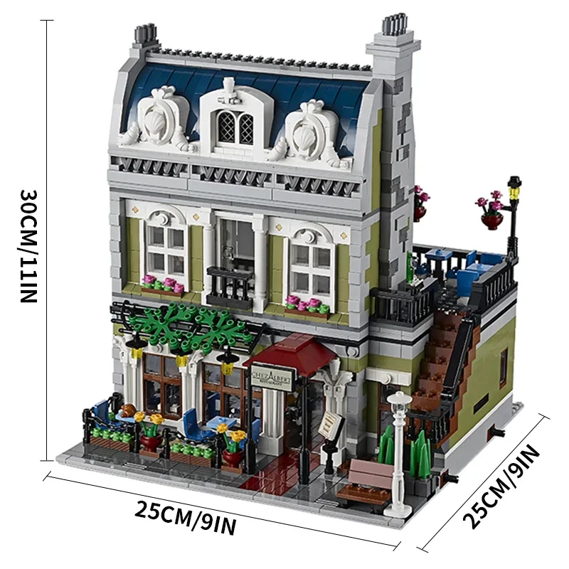 2469 Stück Pariser Restaurants Street View Modell Set Haus Bausteine Architektur Ziegel Spielzeug Weihnachtsgeschenk Kompatibel 10243