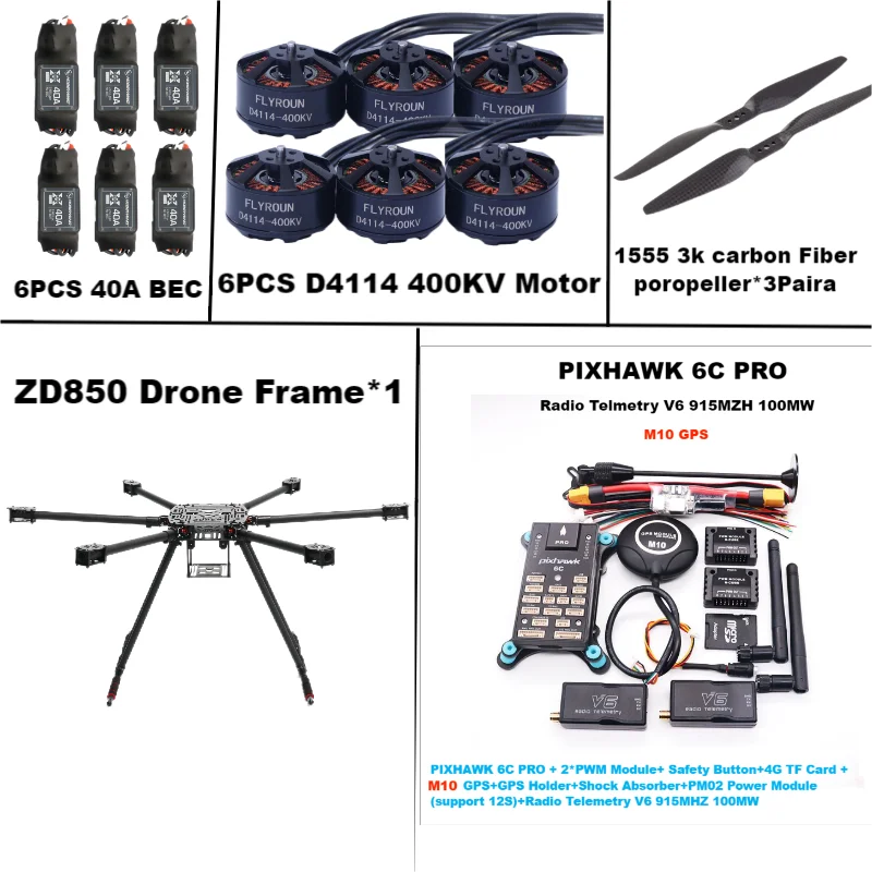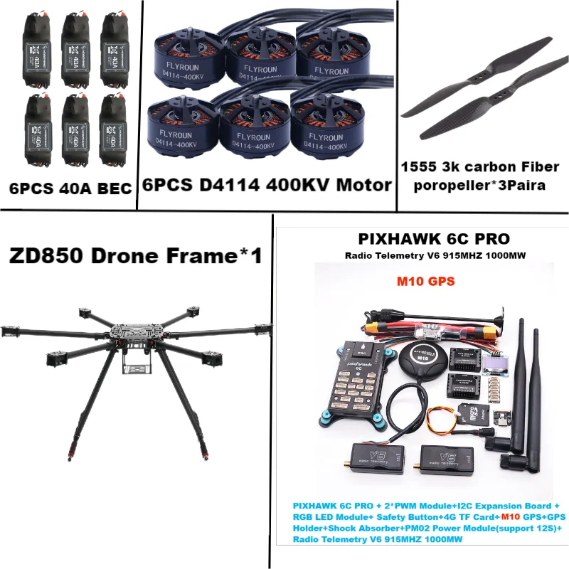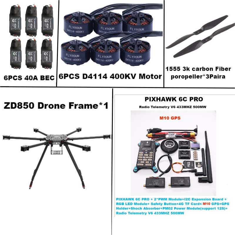 ZD850 6C PRO M10 Vollcarbon 850 mm Hexa-Rotor-Rahmen BLHELI 40A ESCFlight Comtrol Rado Telemetrie-Set