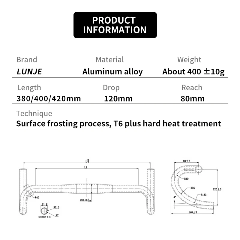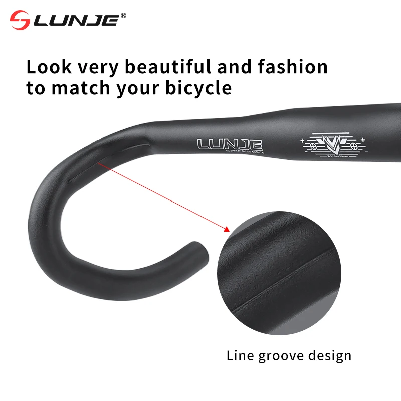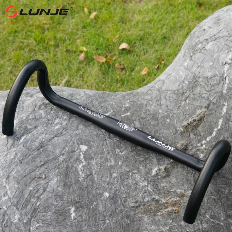 LUNJE 25,4/31,8 Rennrad-Lenker, 380/400/420 mm gebogene Stange, schwarz, mattes Finish, Fahrrad-Lenker aus Aluminiumlegierung