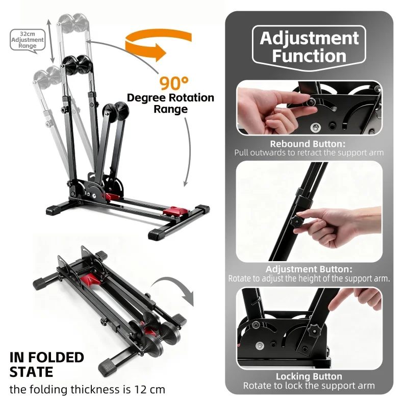 WEST BIKING 3-in-1 Fahrradständer Verstellbarer Klappbarer MTB Rennrad-Ständer aus Kohlenstoffstahl Fahrrad-Zubehör
