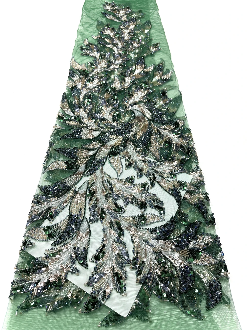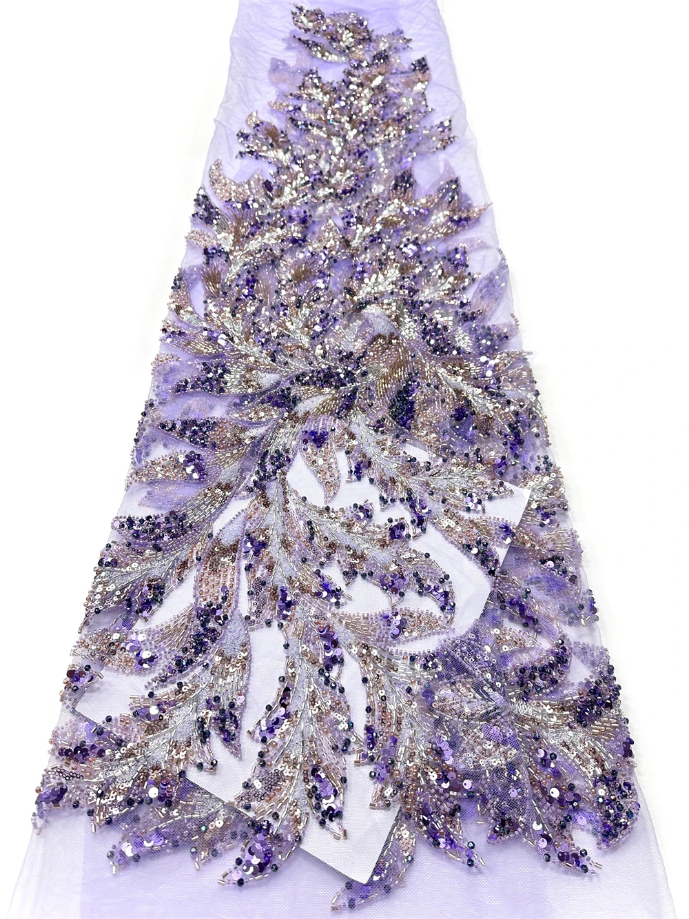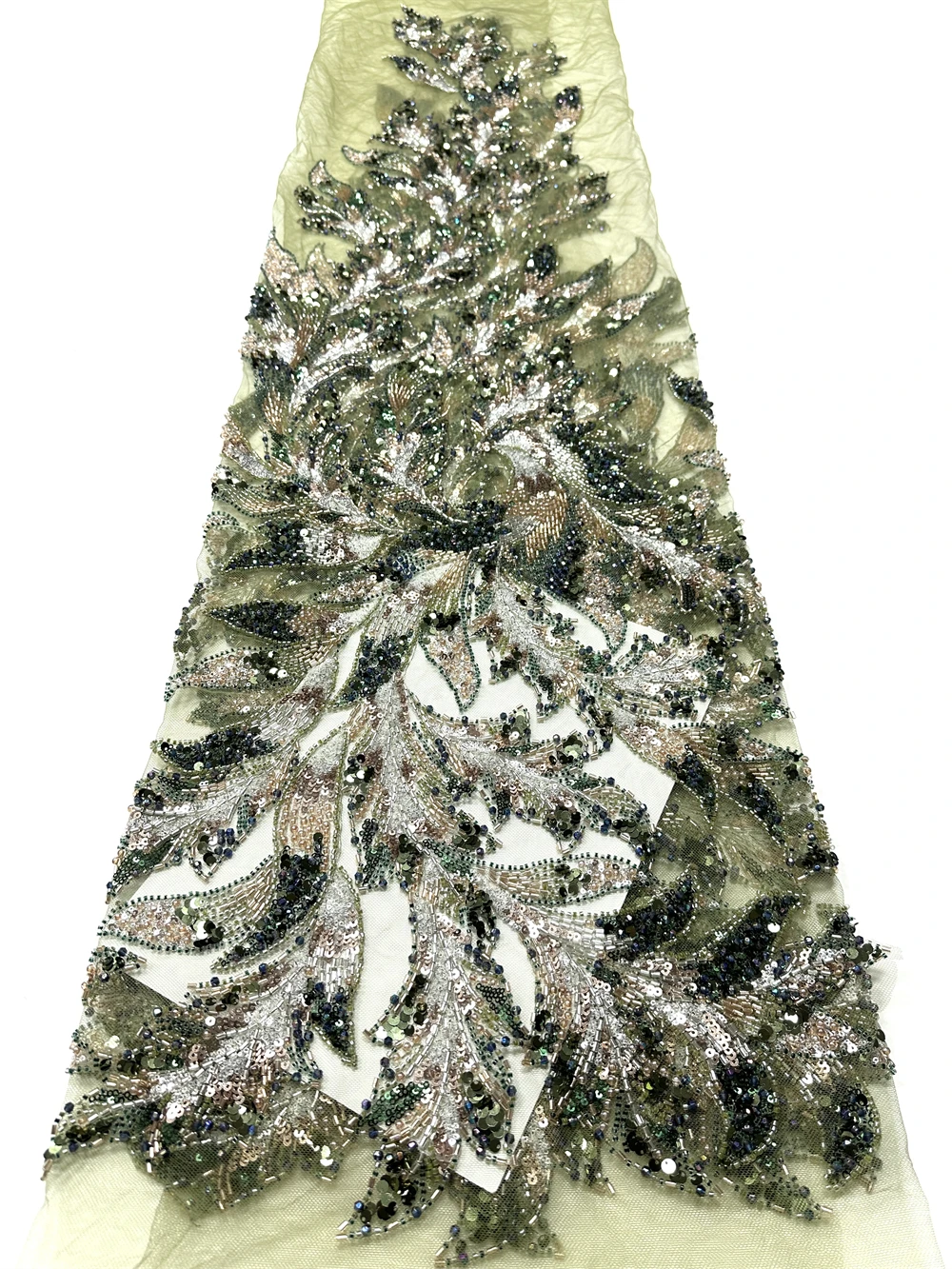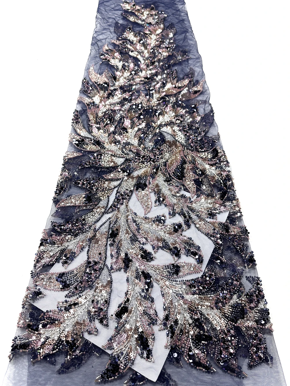 African High-Quality French Heavy 2 Yards Beaded Tulle Lace Fabric with Sequins And Pearls for Bridal Dress Nigeria Style 2026