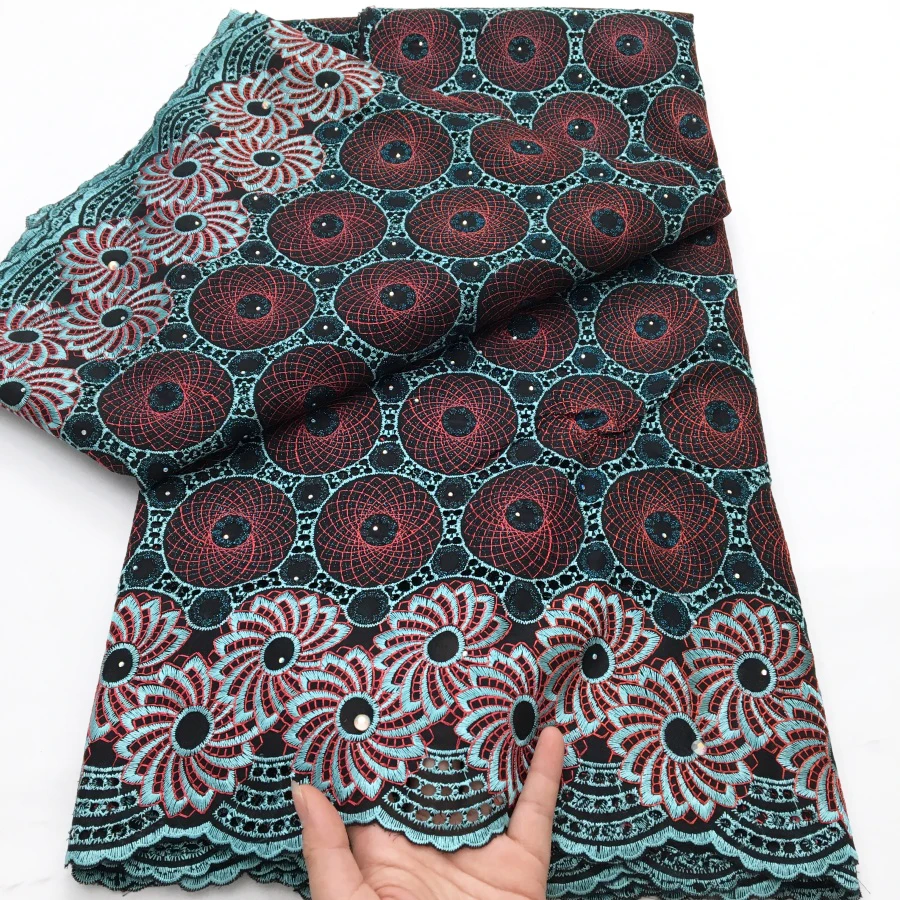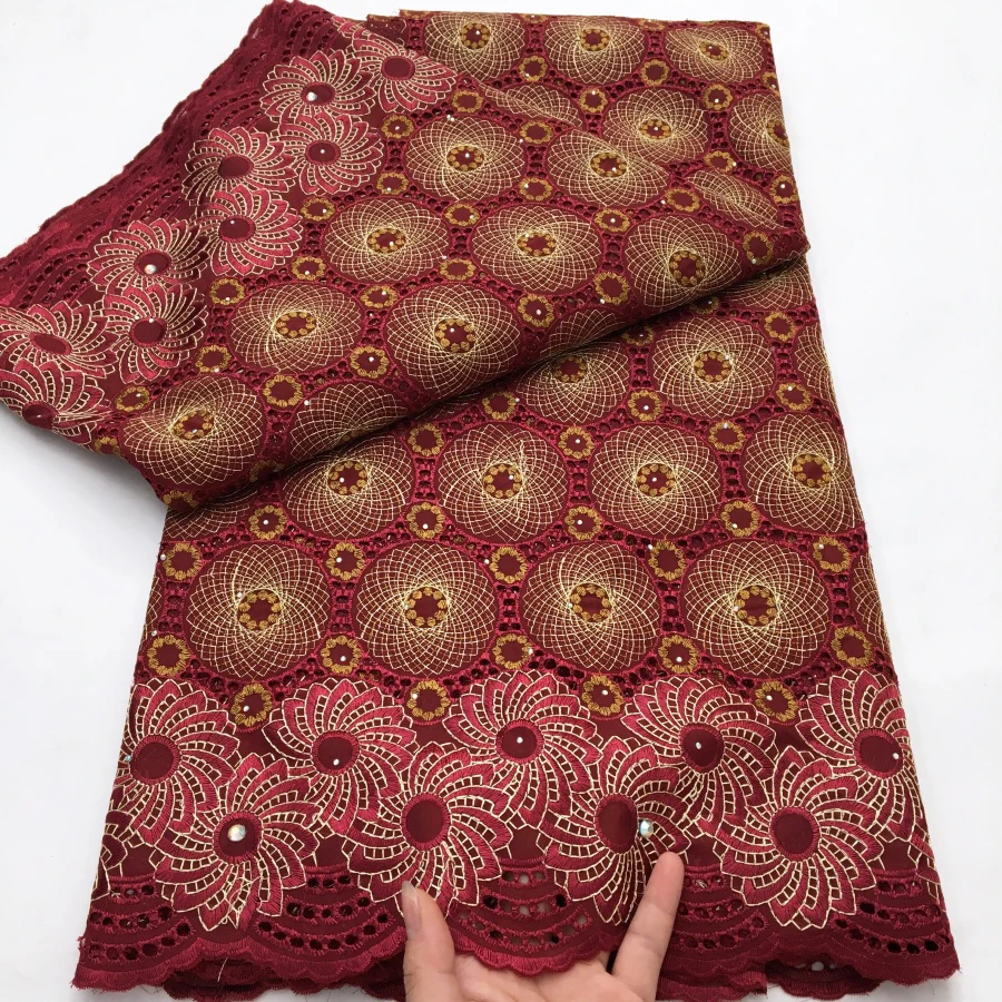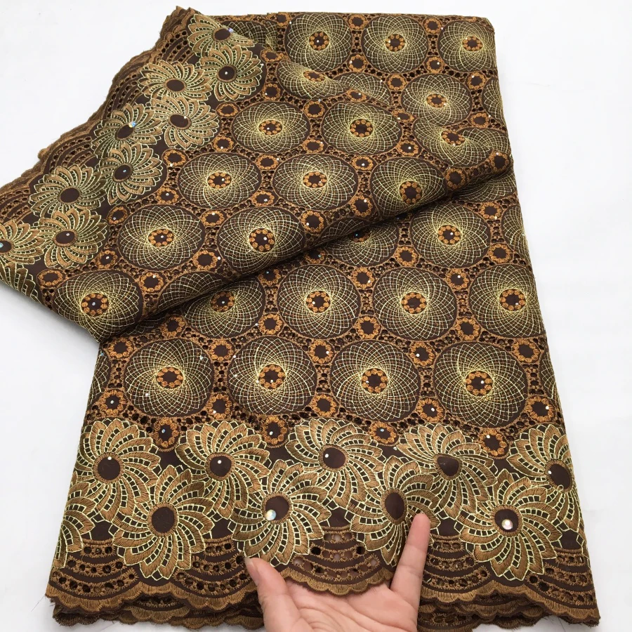 Latest African Satin Cotton Lace Fabrics 2025 High Quality 5Y Swiss Voile Lace Fabric With Stones Nigeria Lace Fabric For Dress