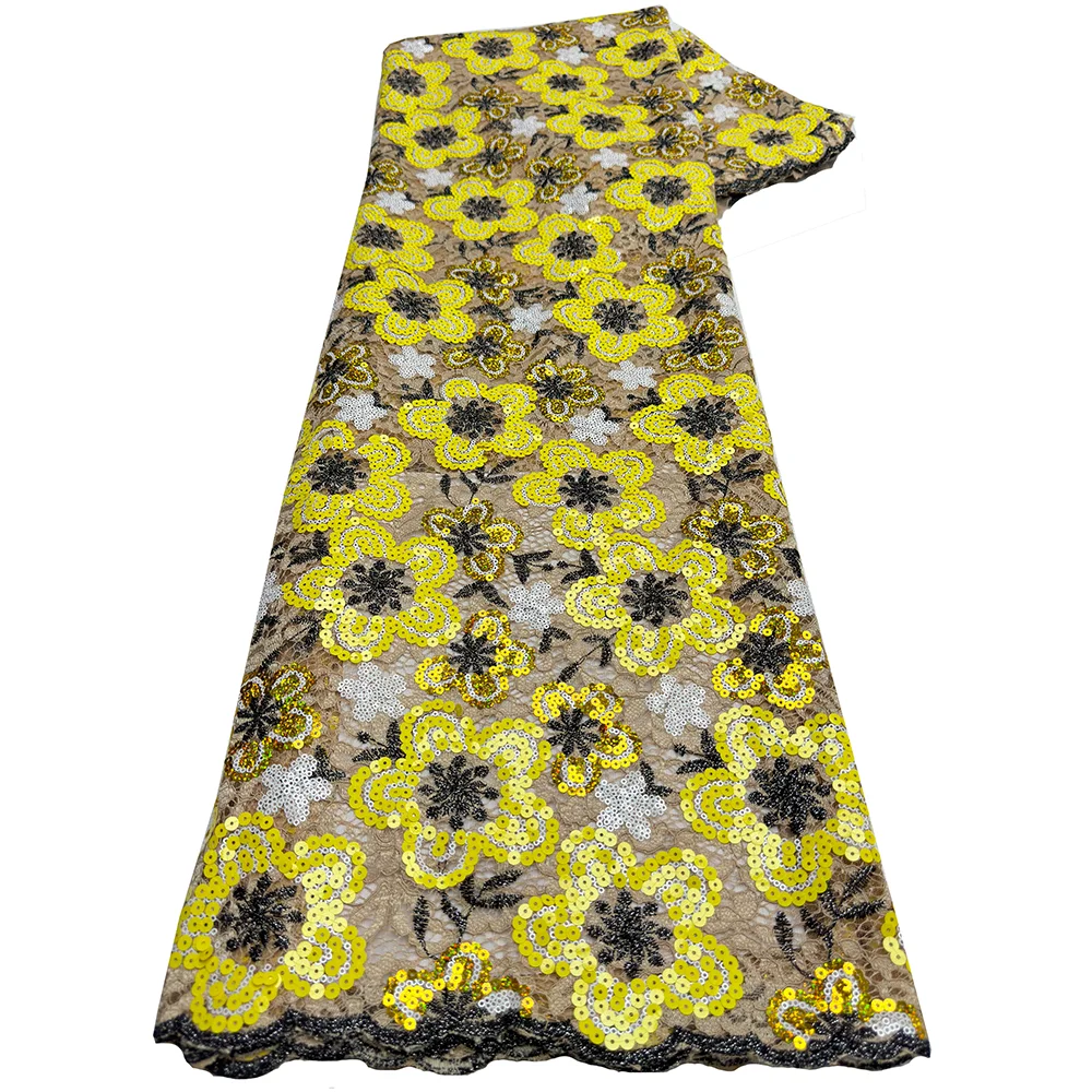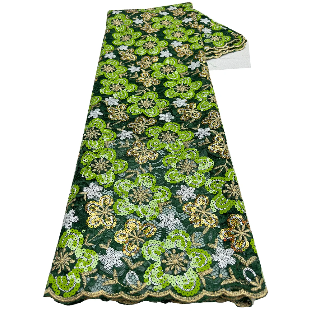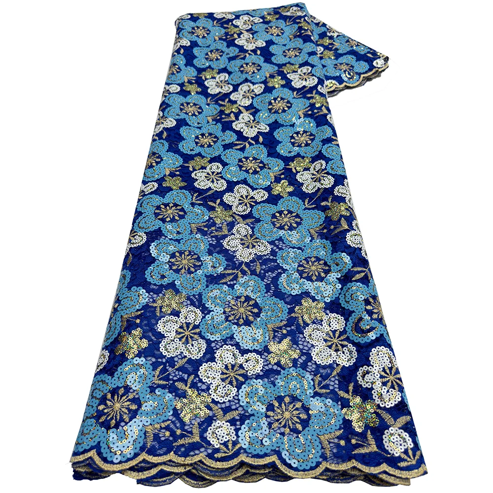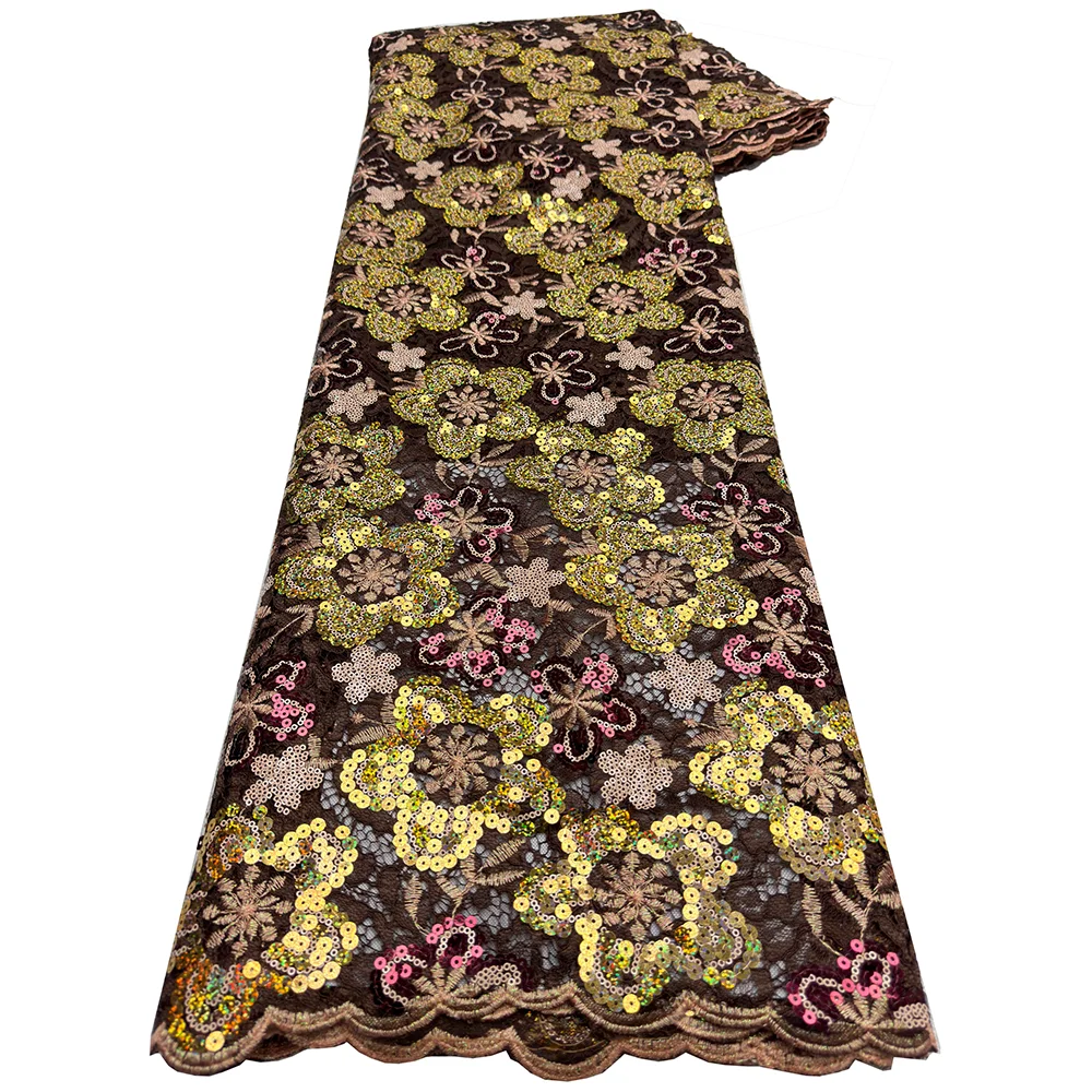 Luxury African Guipure Cord Lace Fabric 2026 Nigerian French Water Soluble Two-Tone Sequins Lace Fabric For Wedding Party Dress