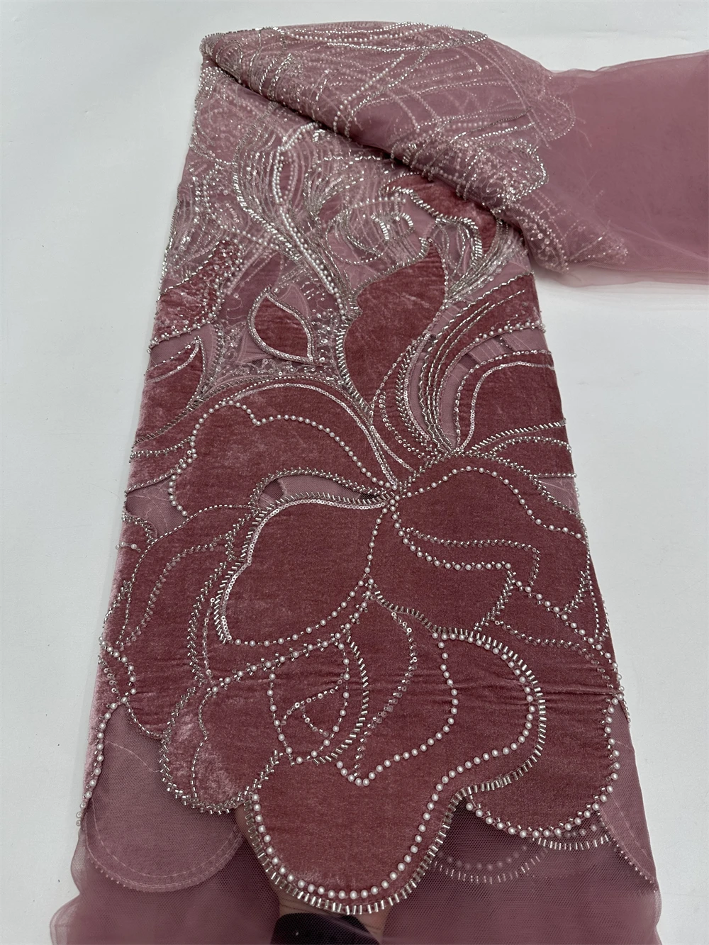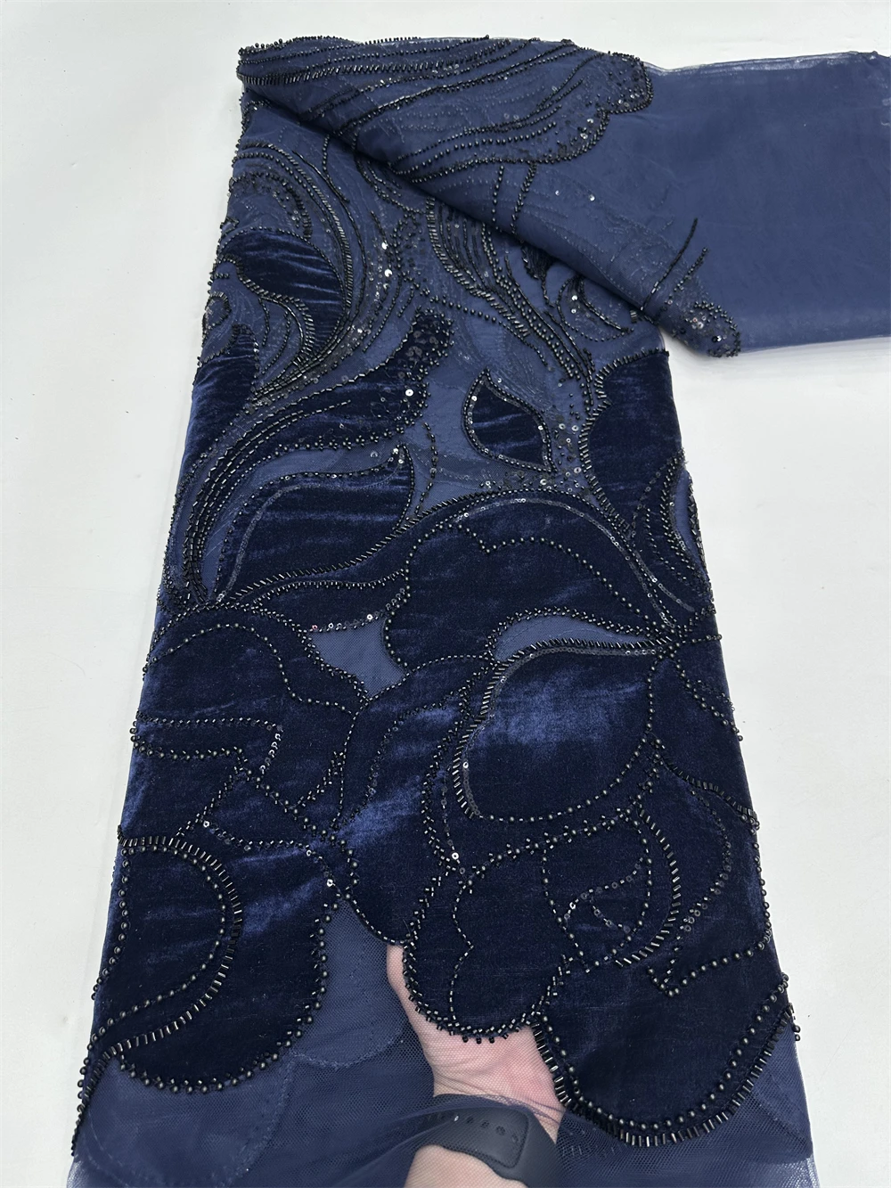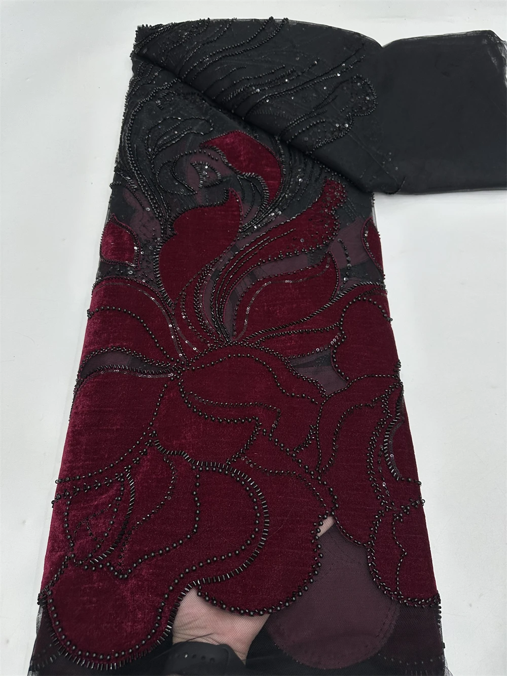 Nigerian Luxury Sequins Velvet Lace Fabric 2025 High Quality Beads African Lace Fabric French For Women Wedding Party Dresses