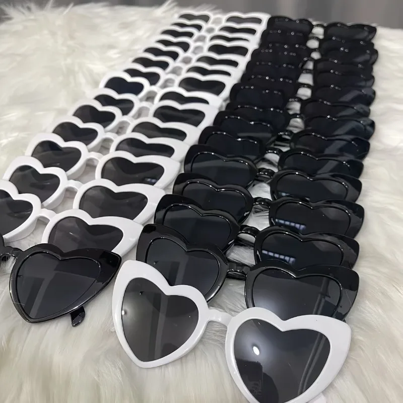 15 Black Heart-Shaped Glasses + 15 White Heart-Shaped Glasses, Bridal Groom Bridesmaid Supplies for Wedding Party