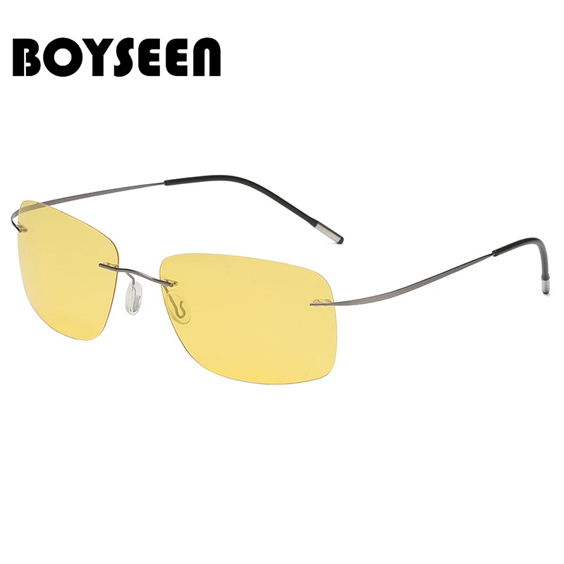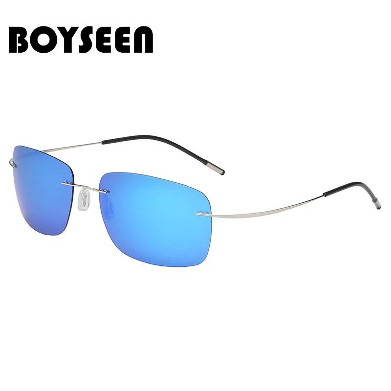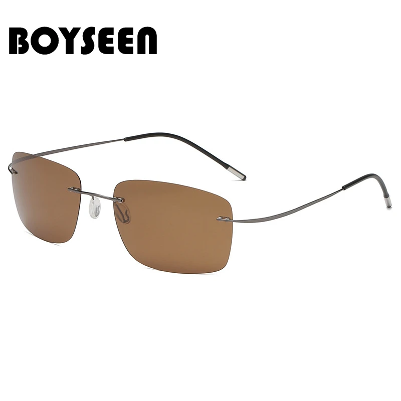 BOYSEEN Men's Rimless Titanium Alloy Polarized Sunglasses Sport Driving Sunglasses Travel Eyewear Ultra Light 10g Glasses UV400