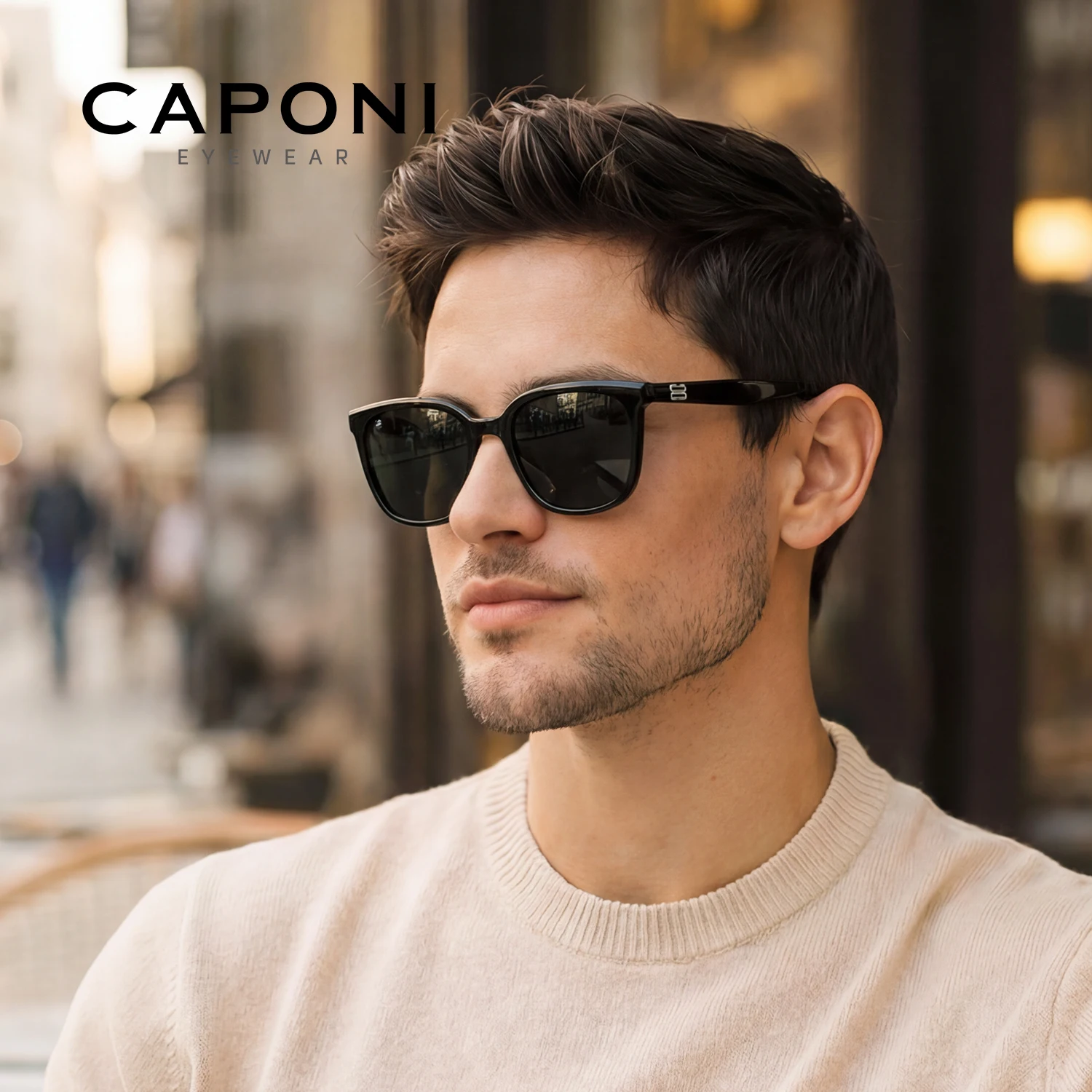 CAPONI Polarized Sunglasses Men Outdoor High Quality Driver Sun Glasses Photochromic UV400 Brand Designer Black Shades BS24048
