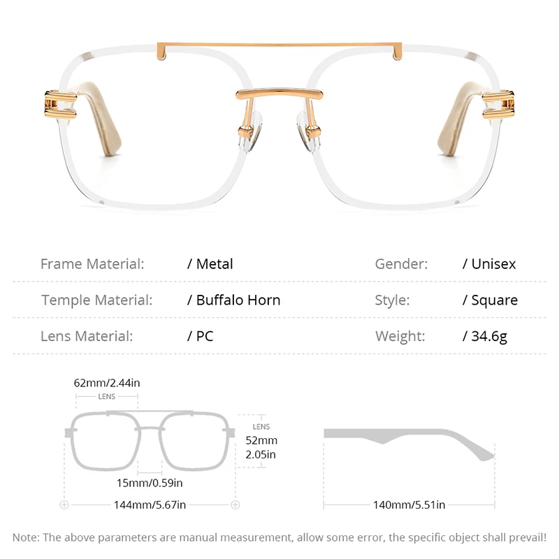 HEPIDEM Buffalo Horn Glasses Men 2025 New Luxury Brand Design Rimless Frameless Big Oversize Square Buffs Eyeglasses Frame Women