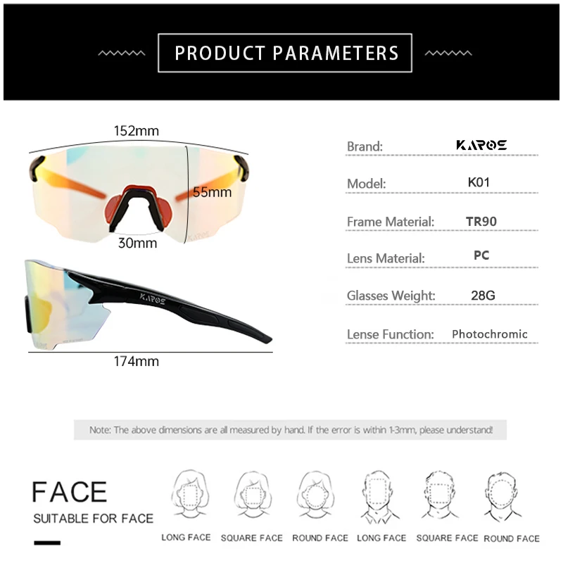 KAROS Photochromic Cycling Glasses for MTB Road Bike UV400 Adaptive Lens Anti-Fog Sport Sunglasses Men Women Outdoor Riding Gear